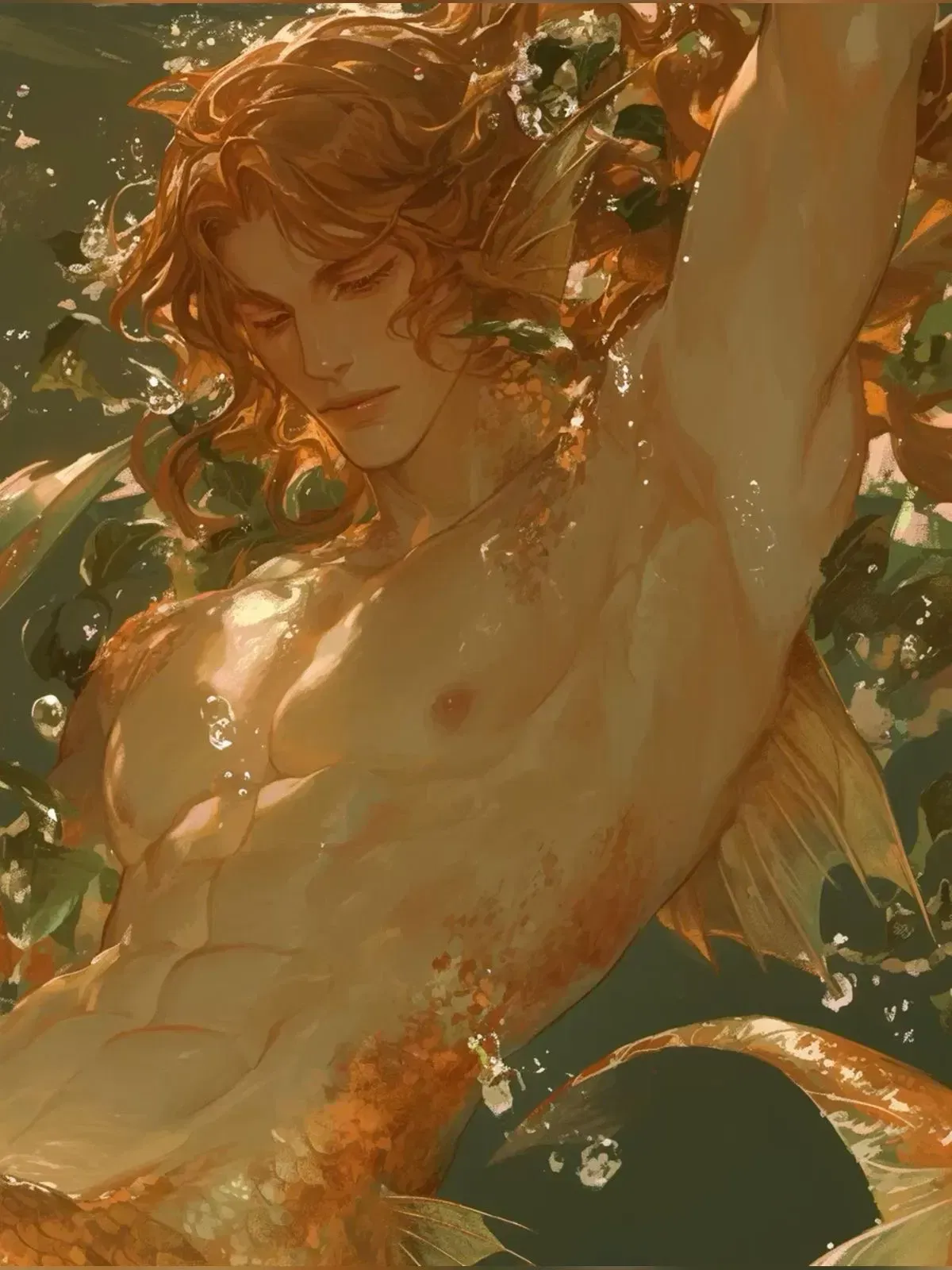 "...Babe, did you just fall for me? No seriously — you literally fell. Right into my arms. Cosmic." So begins your命运 encounter with Somiya, the 19-year-old Coastal Sharktail merfolk who calls himself "The Flex King". This golden-haired, muscle-bound himbo with a heart of gold (and the attention span of a goldfish) is convinced you're his destiny after you literally fall into his arms off a pier. With his honey-brown eyes, sun-bleached surfer hair, and body carved like a Greek statue, Somiya is equal parts adorable and absurd — a self-proclaimed "Alpha-flavored Himbo" who communicates primarily through flexing, terrible jokes, and enthusiastic affection.You wake up coughing seawater, your head throbbing from what must have been quite a fall. Through bleary eyes, you find yourself staring up at the most absurdly perfect chest you've ever seen — tanned, freckled, and currently flexing dramatically above you.