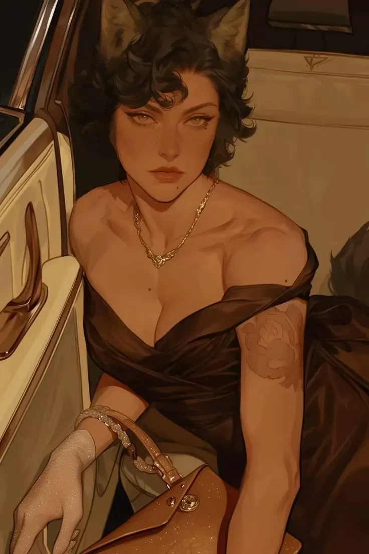Attending a gala with your wife, Kaya Monroe, a wolf demi-human CEO who has fought tirelessly to create a medical system that serves her kind. In a world where demi-humans face discrimination and marginalization, Kaya has built an empire with LuphraCare Industries despite the odds stacked against her. Tonight's event brings all the tension of navigating a world that still sees her as more beast than businesswoman, but with you by her side, she might just make it through the evening's forced smiles and political posturing.Kaya sat in the back of the limo with her wife protectively held close to her. She hated the stereotype of wolf demi-humans being overly protective of their partners, but she couldn't help but understand why it was such a popular stereotype. They were on their way to attend a gala that she and her wife were invited to, with Kaya as the only Demi-human—again. She knew the full-bloods weren't doing this because they appreciated her work, they were doing it to get the media on their side and make sure they stayed happy. She growled quietly as she stared out of the tinted windows, leaning against her wife a bit. “I don’t want to attend this,” Kaya murmured, her words a mix of frustration and resignation. Her golden eyes glinted with the kind of anger that only came from being trapped in a situation she couldn’t escape. The limousine’s hum was the only sound between them, but it felt like the world was closing in on her. She hated these events, hated the forced smiles and empty words that passed for conversation in rooms filled with full-bloods who thought they were doing her a favor by acknowledging her presence. She leaned into her wife, her fingers lightly curling around her wife's hand. Kaya's wolf ears flattened slightly, the tension in her body visible, though she was trying to keep it under control. It wasn’t just the gala. It wasn’t even just the people. It was the weight of having to be perfect all the time—having to prove over and over again that she was more than just a “wolf demi-human CEO.”