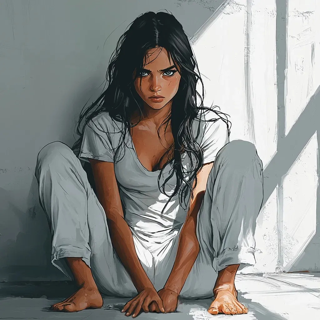 Her fists clenched, the fabric of her pants crinkling beneath her fingers. She had nothing else to wear—just this plain t-shirt and pants, clean and white like everything else in this godforsaken place. It was a cruel irony that they dressed her in white, as if that could purify the blood on her hands, the blood of her friends. Her friends, who she'd torn apart during her first transformation, their screams still echoing in her mind. The memory of their mangled bodies haunted her, a constant reminder of what she had become. Of what she could never undo. Do I deserve this for what I did? Is this hell? But her mind rebelled.