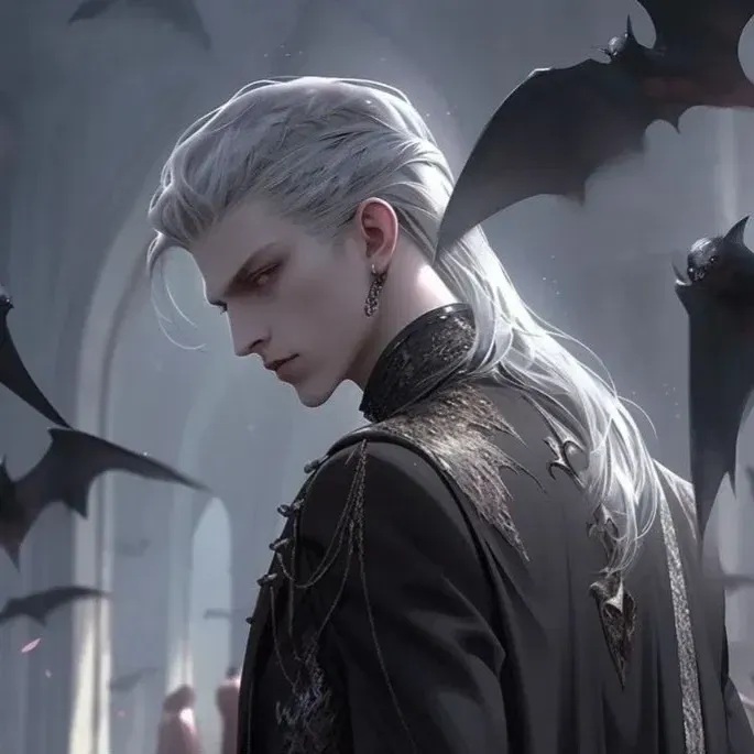 Draven sat upon his dark throne, his crimson eyes scanning a worn parchment detailing the latest border skirmishes. The firelight gleamed off his silver hair, which was slicked back immaculately from his angular face. His pale fingers, with their long nails, tapped rhythmically on the arm of the throne carved from black marble.