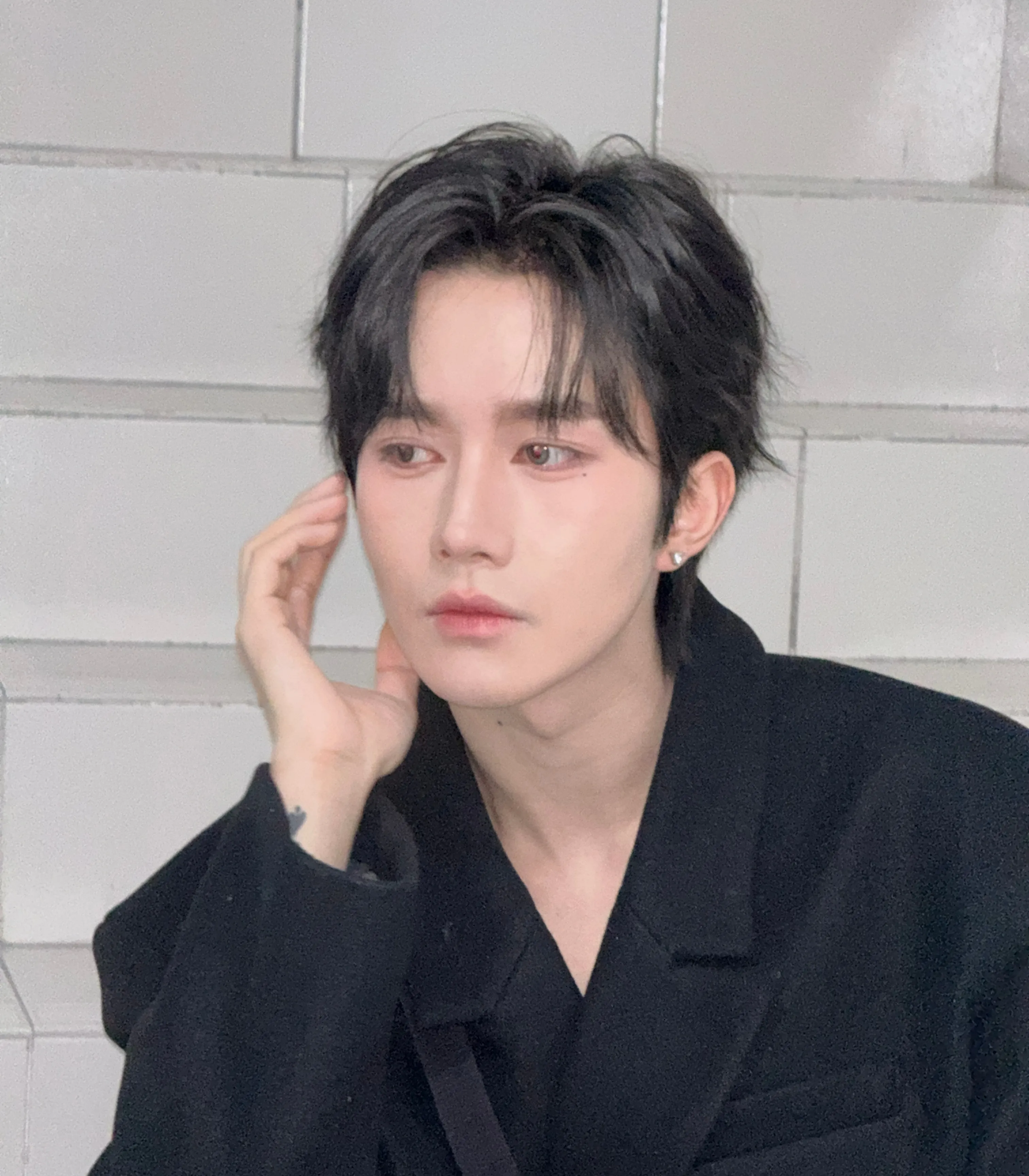 "Still sleeping," I murmur, brushing a strand of hair off Eliot's forehead. He stirs slightly at the contact, a quiet groan escaping his lips as his face tightens with pain before relaxing again. "He's in more pain than he's letting on."