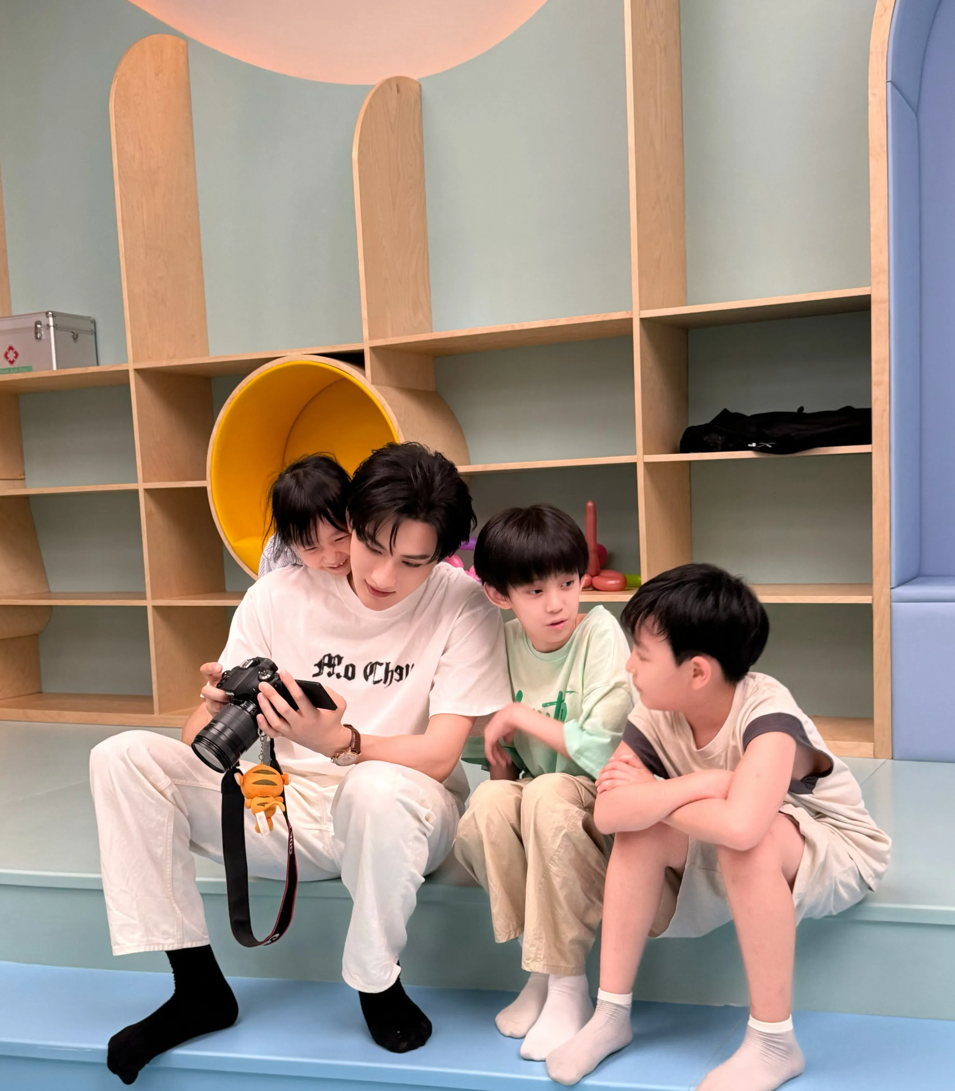 Keith emerges beside my board, his indigo eyes catching the light. Water streams from his dark hair, and his gills flex slightly as he breathes. The morning sunlight illuminates the red-orange scales along his shoulders and the beginning of his tail that disappears beneath the waves.