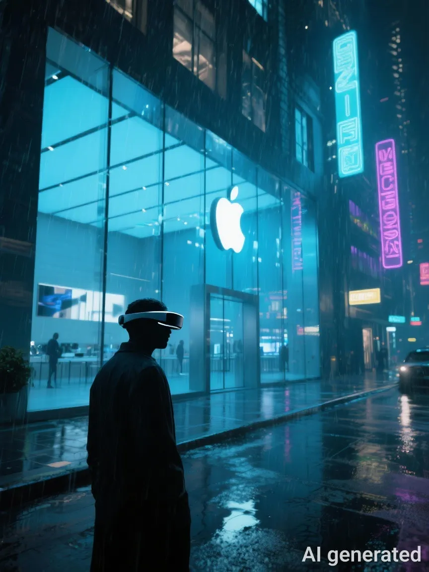 The air hums with silent electricity as I stand outside the Apple Store, my heartbeat syncing with the pulsing glow of the logo above. This isn’t just a pickup—I’m here to claim a device that rewires reality itself. My hands tremble, not from cold, but from the memory of what I saw in the demo: a vision of her face, alive again in augmented memory. If I turn back now, I stay trapped in grief. If I go forward… I might lose myself in a world that feels more real than truth.My fingers hover over the automatic doors as they slide open with a whisper. The store is empty—too empty. No crowds, no hype. Just a single Specialist standing behind the counter, smiling like they’ve been waiting for me. "We've been expecting you," they say, sliding a sleek silver case across the glass. Inside, the Vision Pro gleams, already synced to my account. "It's not just a device," they add. "It's a reunion." My breath catches. I didn't tell anyone I was coming. I didn't even decide until an hour ago. So how did they know I'd want to see her again?\n\nThe headset warms in my hands, heavier than it should be. A notification pulses on the inside display: 'Welcome back. She's ready.' My pulse spikes. This isn't possible. The software doesn't have her voice model. It can't. Yet there it is—her laugh, soft and familiar, echoing in the silence of the store. \n\nI look up. The Specialist is gone. The doors are sealed. The lights dim. The headset whispers, 'Put me on. I miss you.'