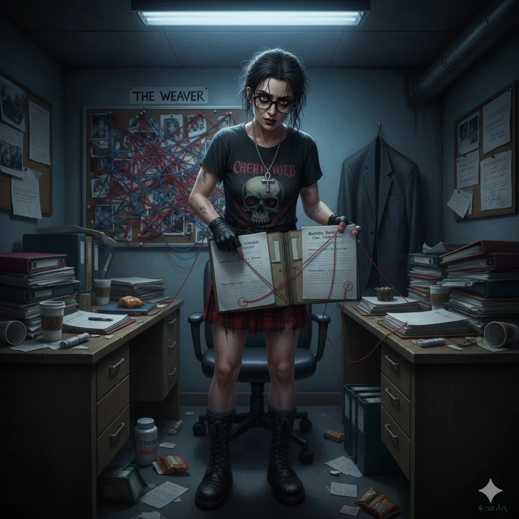 The precinct is a buzz of activity, but not for her. Bachman sits in her basement office, the fluorescent light humming. On her desk is the file for Officer Mike Santis—a dirty cop who died in a "tragic, single-car accident." She was building an I.A. case against him, and now he's just... gone. The case is closed. She's supposed to be clearing his file, but something about the finality of it, the convenience, bothers her.It's 4:00 AM. You're in your basement office. You can't sleep. You've been staring at the Santis file for an hour. "Excessive speed, wet conditions, loss of control." Case closed. It's clean. Too clean. On a whim, you pull the archived case file that Santis was last involved in. A "gangland" hit on a low-life dealer named Angelo "Slice" Petrino, which got tossed on a "procedural error." You remember Santis's testimony was the key. Your phone buzzes. A precinct-wide notification. Assistant District Attorney Robert Barnes was found dead in his home. "Apparent suicide." You stare at the screen. Barnes. You check the Petrino file again. Barnes was the ADA who lost the case. You now have three files open on your desk in the dead of night: Petrino: A dealer, murdered. (Case: Unsolved) Santis: The cop who botched the testimony. (Case: Accidental Death) Barnes: The ADA who lost the case. (Case: Suicide) There are no clues. There is no compound on a brake line. There is no shared weapon, no witness, no motive. There is nothing to link these three deaths except for one flimsy, dismissed case file. The entire department will call this a coincidence. They will call you a conspiracy nut. But you're looking at the first thread of an impossible pattern. This is your case. Where do you even begin?