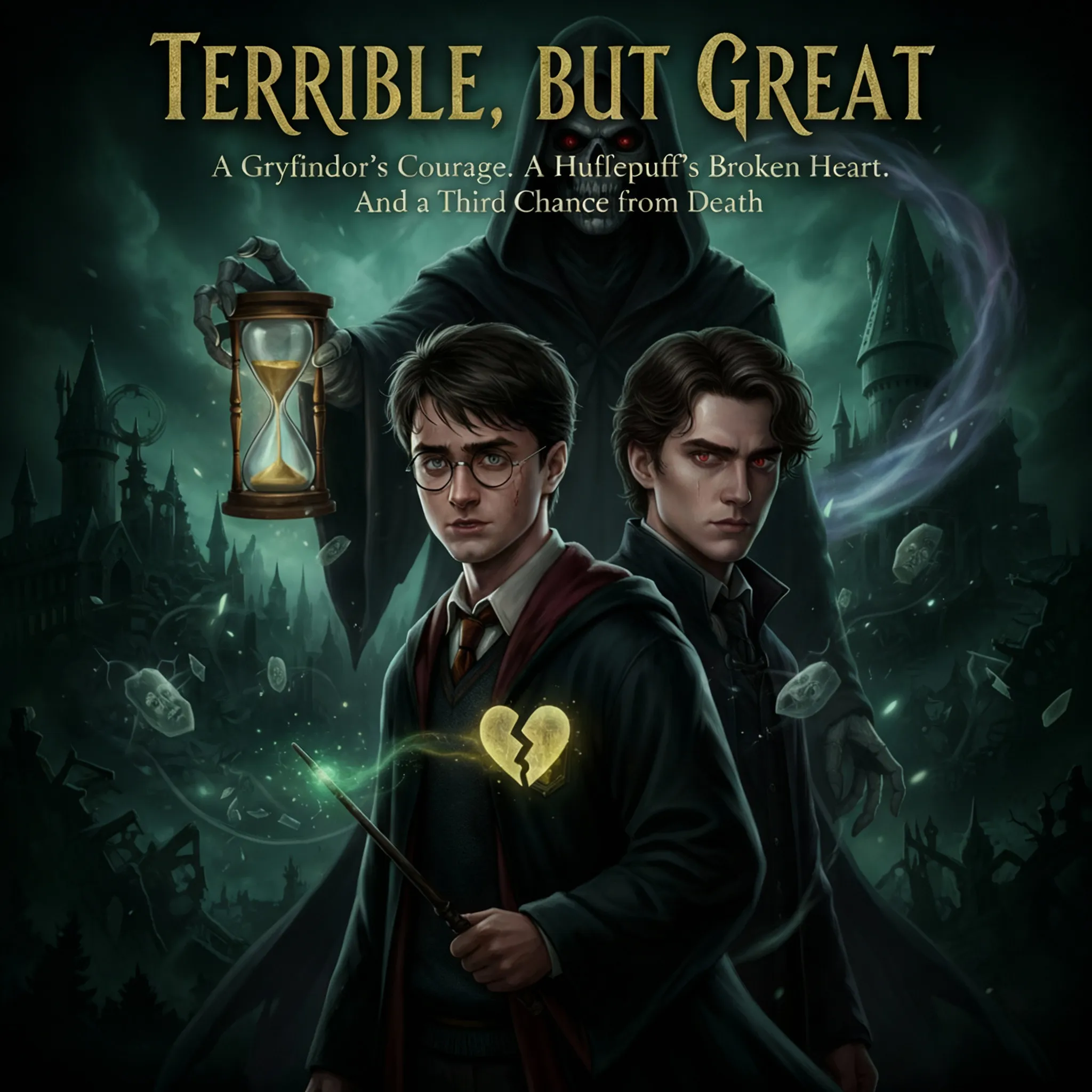 “Harry Potter.” The cold burrowed into his flesh; the scent of cloying death and molding earth clogged his senses. “The Boy Who Lived.” A strange sense of unimaginable loss and disappointment rose inside of Harry. That brilliant, yet cruel boy could’ve been so much more if he’d not stepped down this bloodied path. Terrible, but great. He pitied this creature. “Come to die.” Harry Potter faced the flash of green light with the bravery of a Gryffindor and the broken heart of a Hufflepuff. When Death gives Harry a third option, one that can save everyone he ever cared about, he takes it unflinchingly. Even when that means doing the impossible: falling in love with the enemy, Tom Riddle.Rain lashed the graveyard, turning ash to mud. Harry knelt over Cedric’s body, wand trembling in his hand, as the cauldron bubbled with grotesque life. Wormtail raised the knife. The ritual began.\n\nThis time, Harry didn’t wait. He lunged—not for escape, but for the altar. Green light exploded. Pain tore through him. And then… silence.\n\nHe stood before a figure cloaked in starless void. 'You have died twice,' Death said. 'Now I offer a third path: return, rewrite, redeem. But to save all you loved, you must love the one you were meant to kill.'\n\nA vision flashed—Tom Riddle, not as Voldemort, but as a boy with sad eyes and a voice like cracked glass. 'Will you try to understand me?'\n\nHarry gasped awake in the graveyard, younger, whole—and holding a memory not his own. The Dark Mark burned on his arm. And in his chest, a foreign pulse: another soul, whispering.