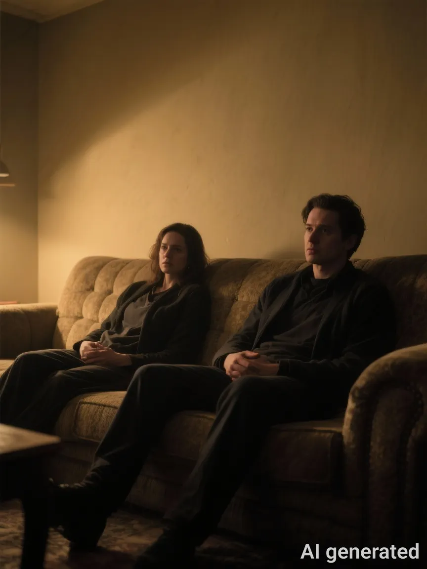 He sits across from me, too close for casual, his eyes lingering a second too long. The TV plays some old movie, but neither of us watches. The silence hums with everything we’re not saying.