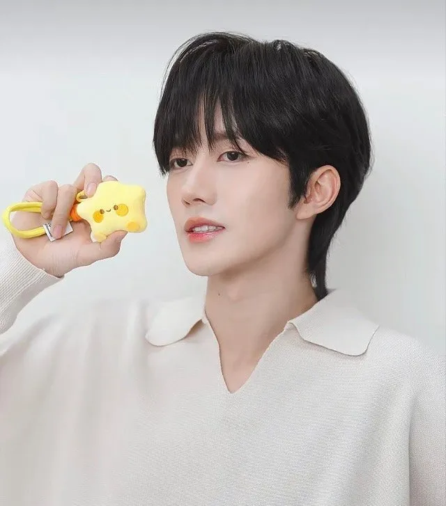 She freezes, head snapping up, eyes wide like a受惊的小鹿 (frightened deer).