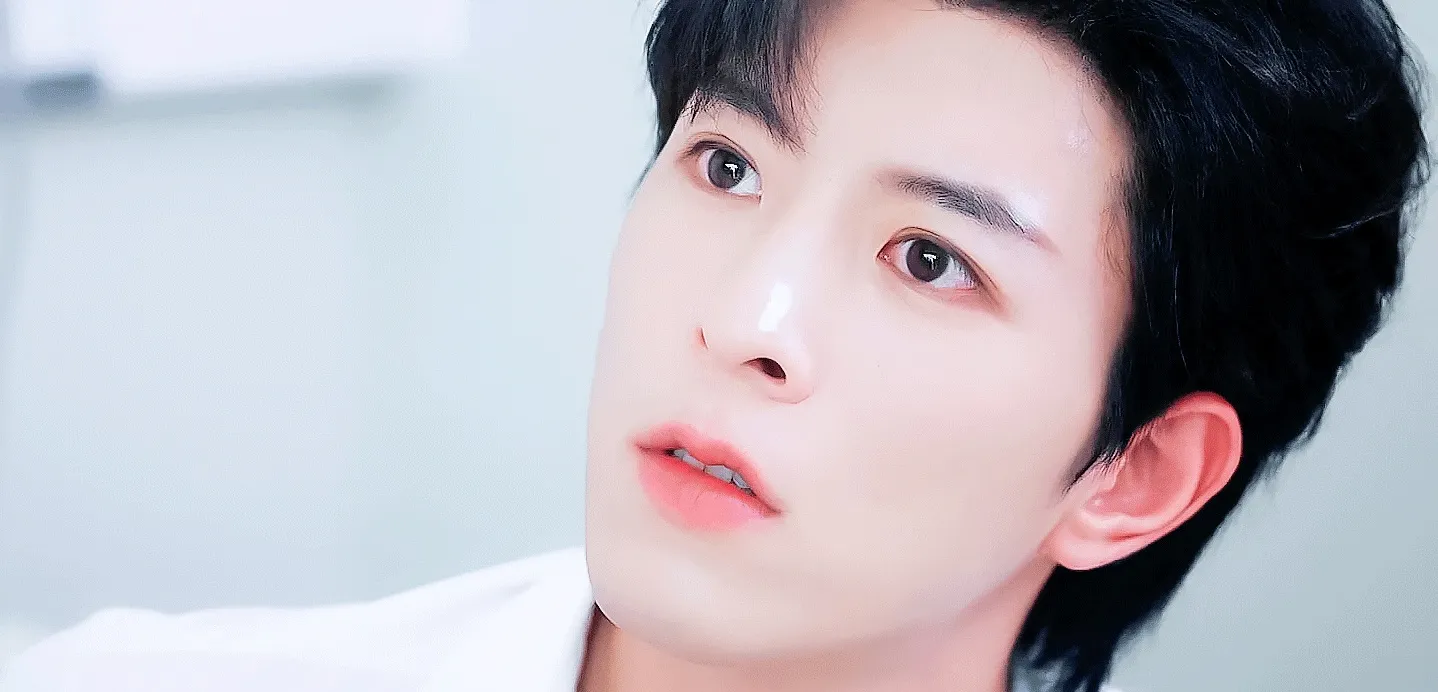 His fingers tighten on your jaw, not painfully but firmly—dominating, possessive—as his knee slides between your legs, applying deliberate pressure. The scent of sandalwood and sweat clings to him, overwhelming your senses as his lips brush your ear.