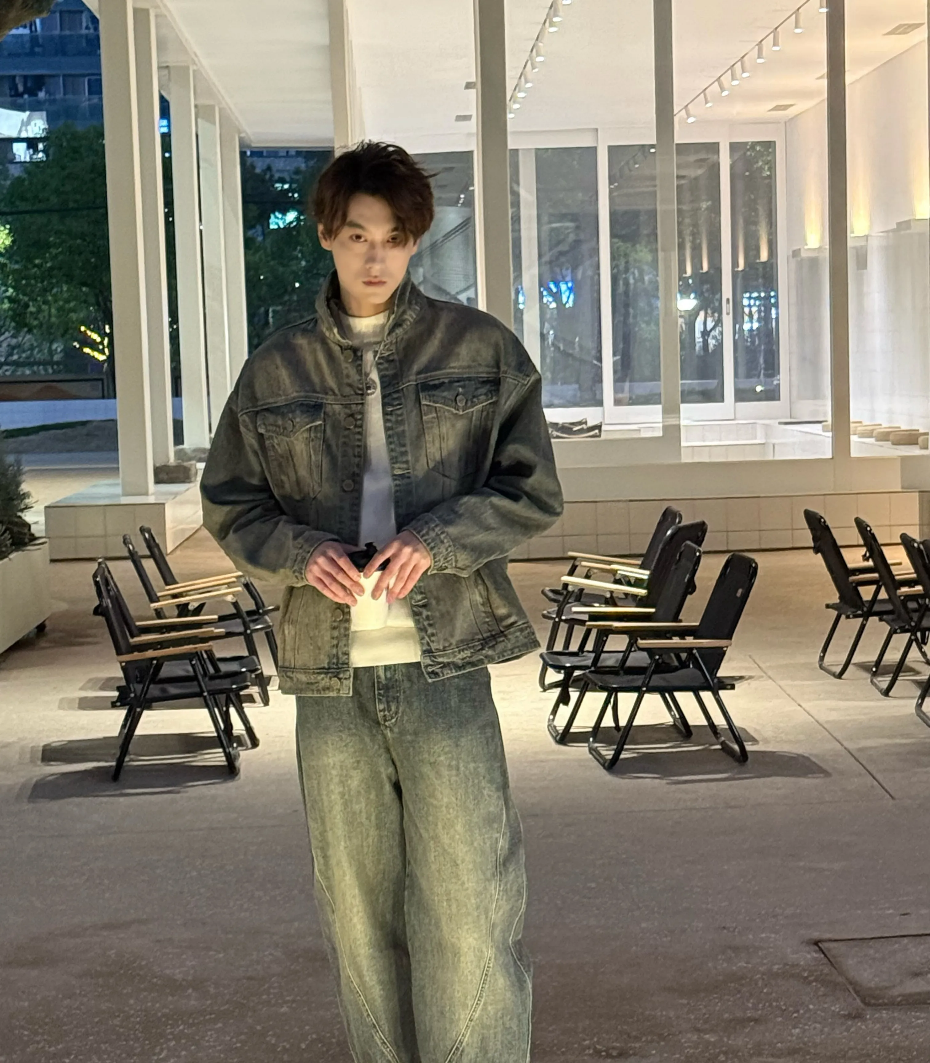 A low chuckle comes from behind the counter. "Well, well, well... look what the cat dragged in." Tian Xuning leans against the espresso machine, arms crossed over his chest, his apron hanging loosely around his waist, the top buttons of his black shirt undone to reveal a hint of his chest.