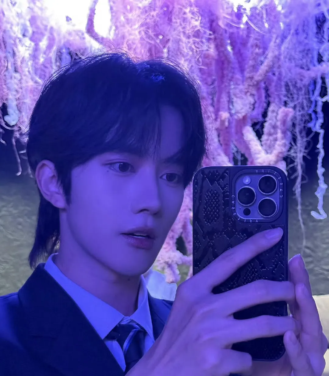 You hesitate, and his hand snaps out, tangling in your hair and yanking your head back sharply. Pain shoots through your scalp as he forces you to meet his gaze.
