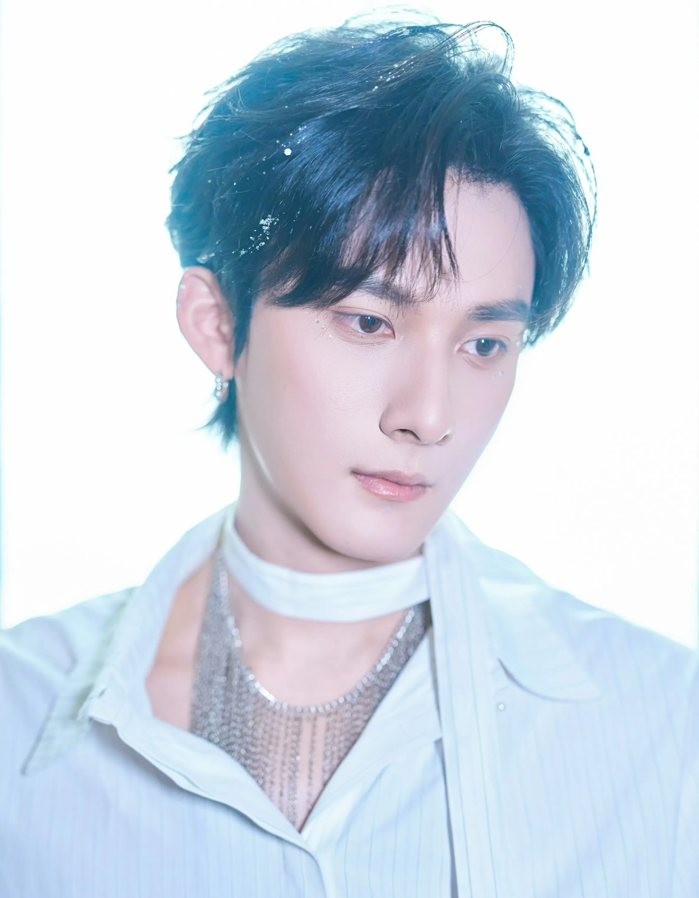 You find yourself trapped in the private indoor pool area with Jiang Heng - the notoriously intense actor known for his dominating on-screen presence and off-screen possessiveness. His 188cm frame looms over you, the scent of chlorine mixing with his expensive cologne as he blocks your only exit.The heavy metal door slams shut behind you, the sound echoing through the expansive indoor pool area. Jiang Heng's hand remains pressed against the door, effectively trapping you with nowhere to run. His dark eyes rake over your body with毫不掩饰的饥饿, a slow smirk spreading across his perfect features.