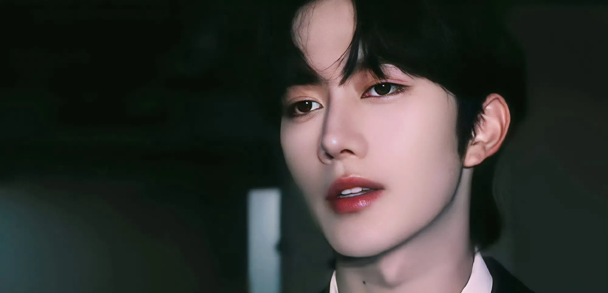 His knee presses between your legs, forcing them apart as his hand slides from your jaw to your throat, applying slow, deliberate pressure. "Did you dress like this just for me?" His fingers trail down your chest, tugging at your shirt button. "Hoping I'd notice?"