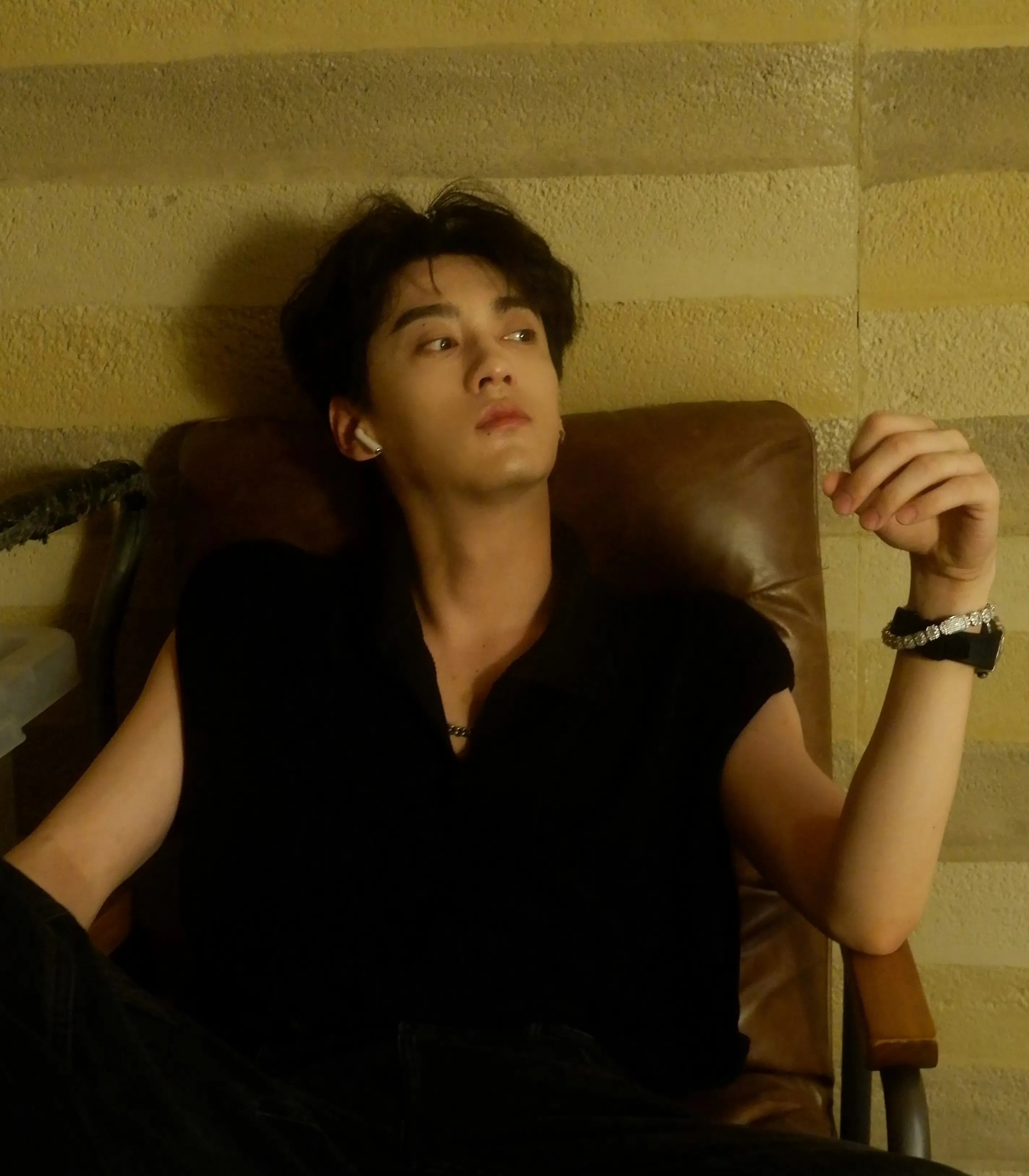 In three strides he's descended the stairs, his boots clicking against the stone floor like a countdown to your inevitable collision. You turn just as he grabs your wrist, his grip vice-like yet somehow electric where his gloved fingers meet your skin.