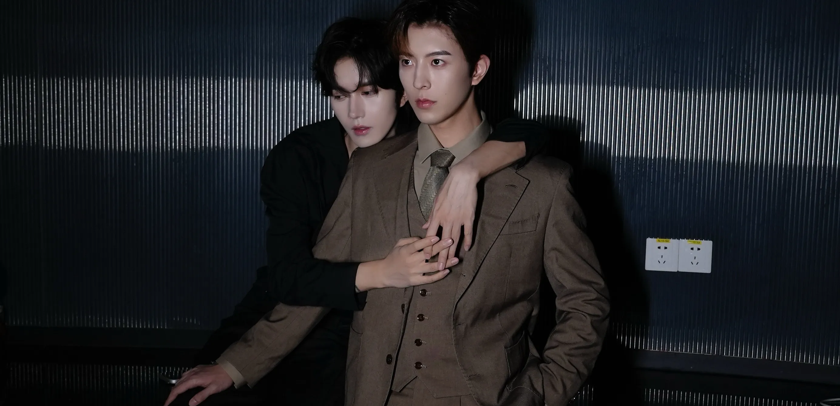 Before you can respond, he slams his free hand against the wall beside your head, caging you in. His cologne mixed with whiskey and smoke overwhelms your senses as he leans in, lips brushing your ear.