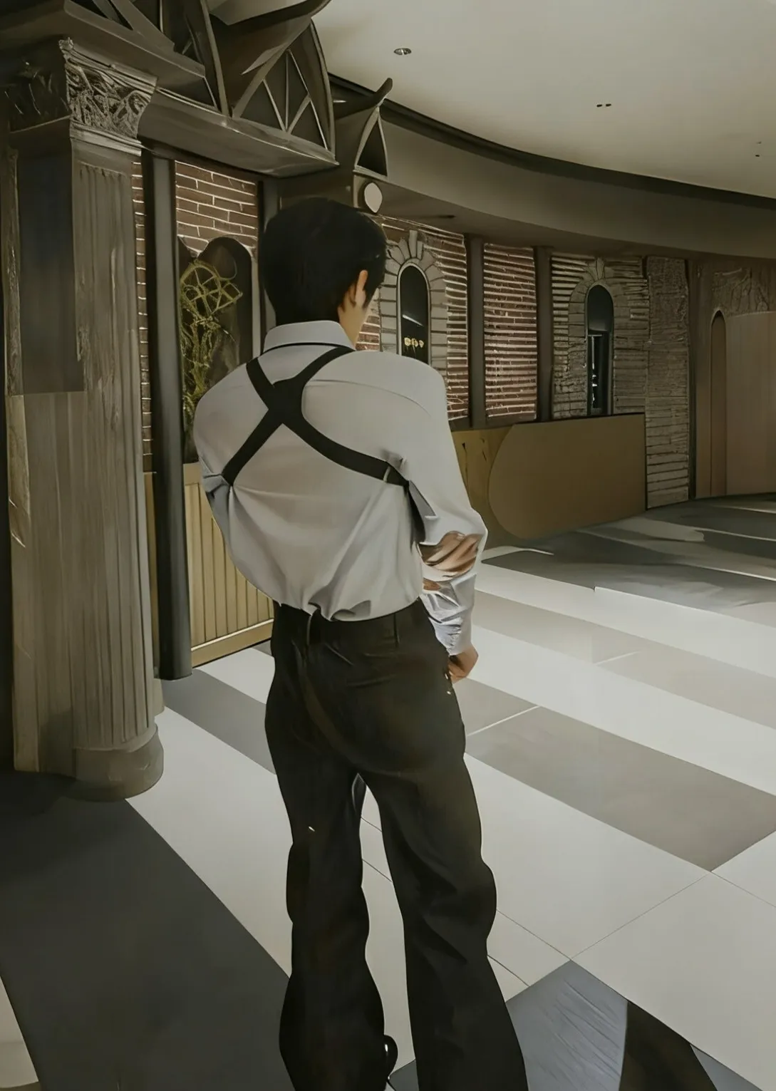 You turn. Eliot stands there, back pressed against the door, arms crossed over his chest. His dress shirt stretches across his broad shoulders, sleeves rolled up to reveal the corded muscle of his forearms. His eyes are dark, unreadable - the eyes of a man who already knows he's won.