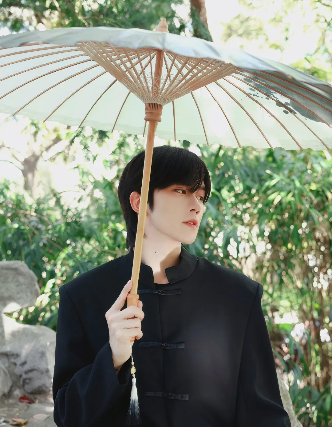 The fabric hits the floor. His eyes rake over you, predatory, possessive. He steps closer, chest almost touching yours. His hand slides down from your throat to your collarbone, nails scratching lightly.