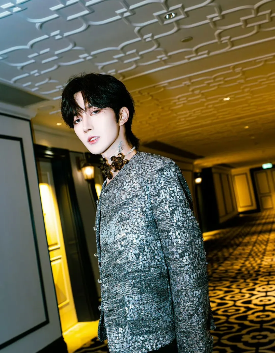 His free hand slides up your shirt, fingers brushing over your breast roughly before moving to grip your jaw, forcing you to look at your reflection in the mirrored closet door. His eyes are dark with hunger, pupils blown wide.