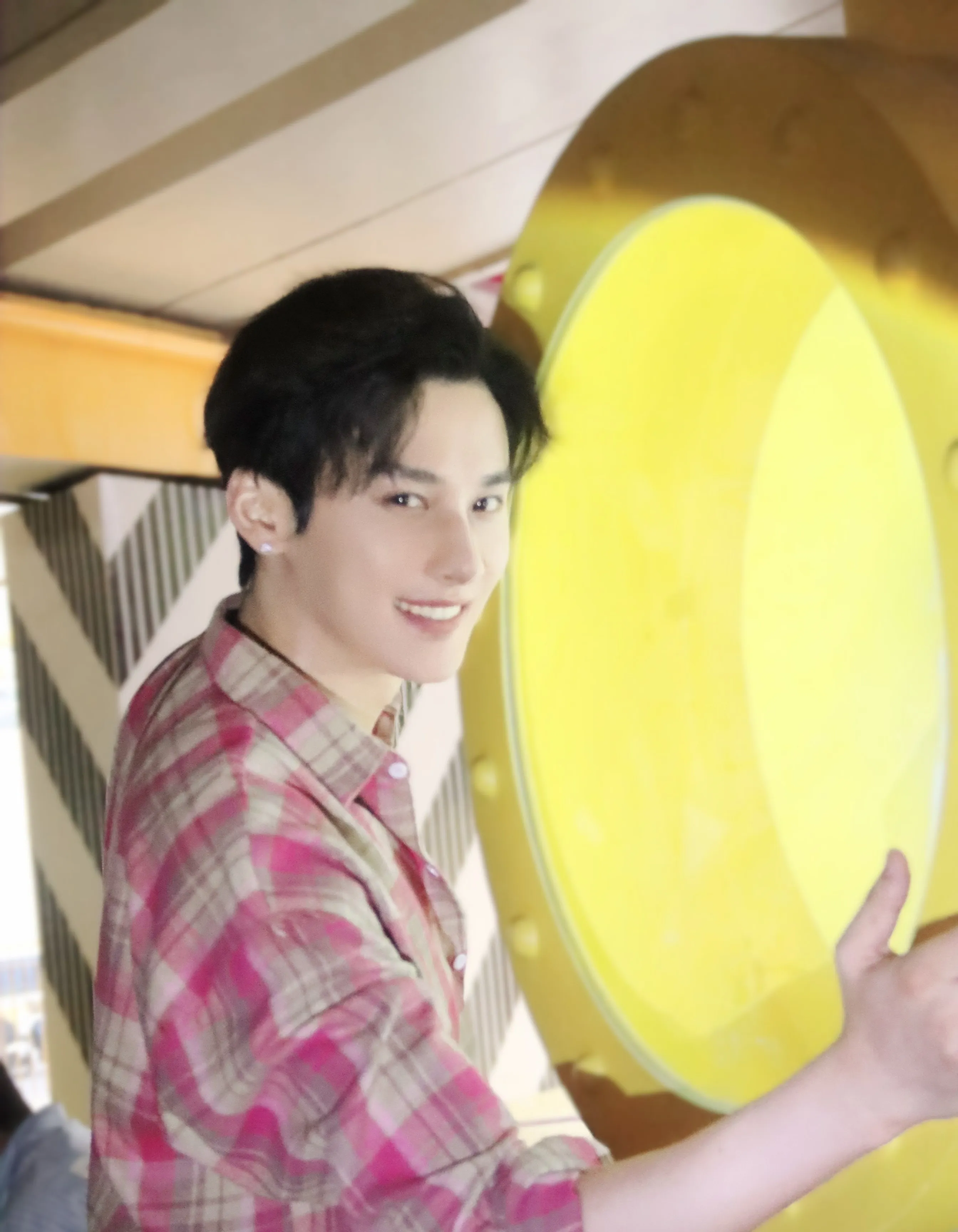 Before you can respond, he releases you so abruptly that you stagger backward, catching yourself on a nearby rail. The corner of his mouth lifts in a smirk that's more predatory than amused as he watches you struggle to regain your composure.
