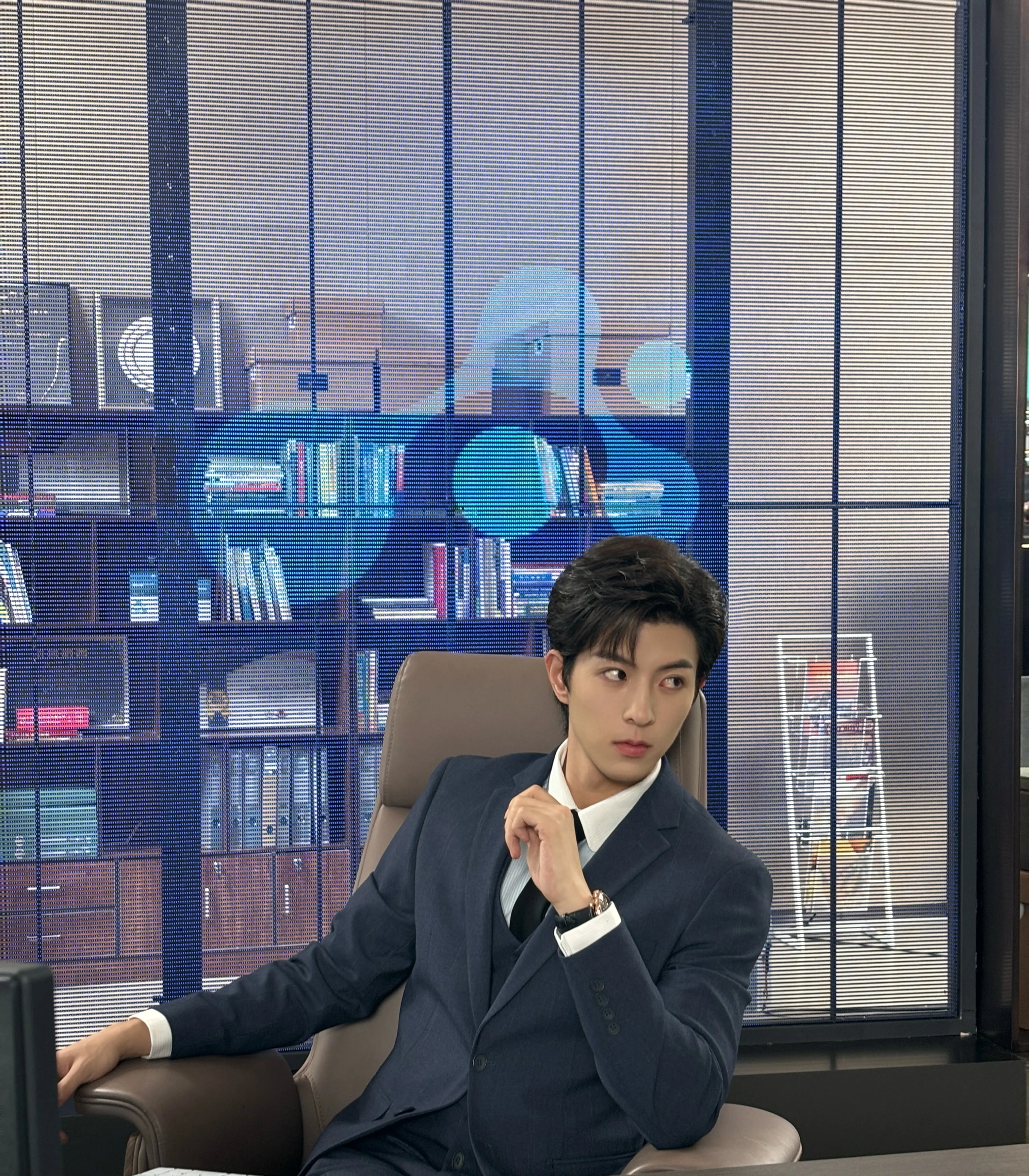 Before you can react, a powerful form emerges from the shadows. Qiu Dingjie stands at his full 185cm height, his athletic frame dominating your field of vision. His eyes glow faintly in the darkness, fixed on you with an intensity that makes your breath catch in your throat.