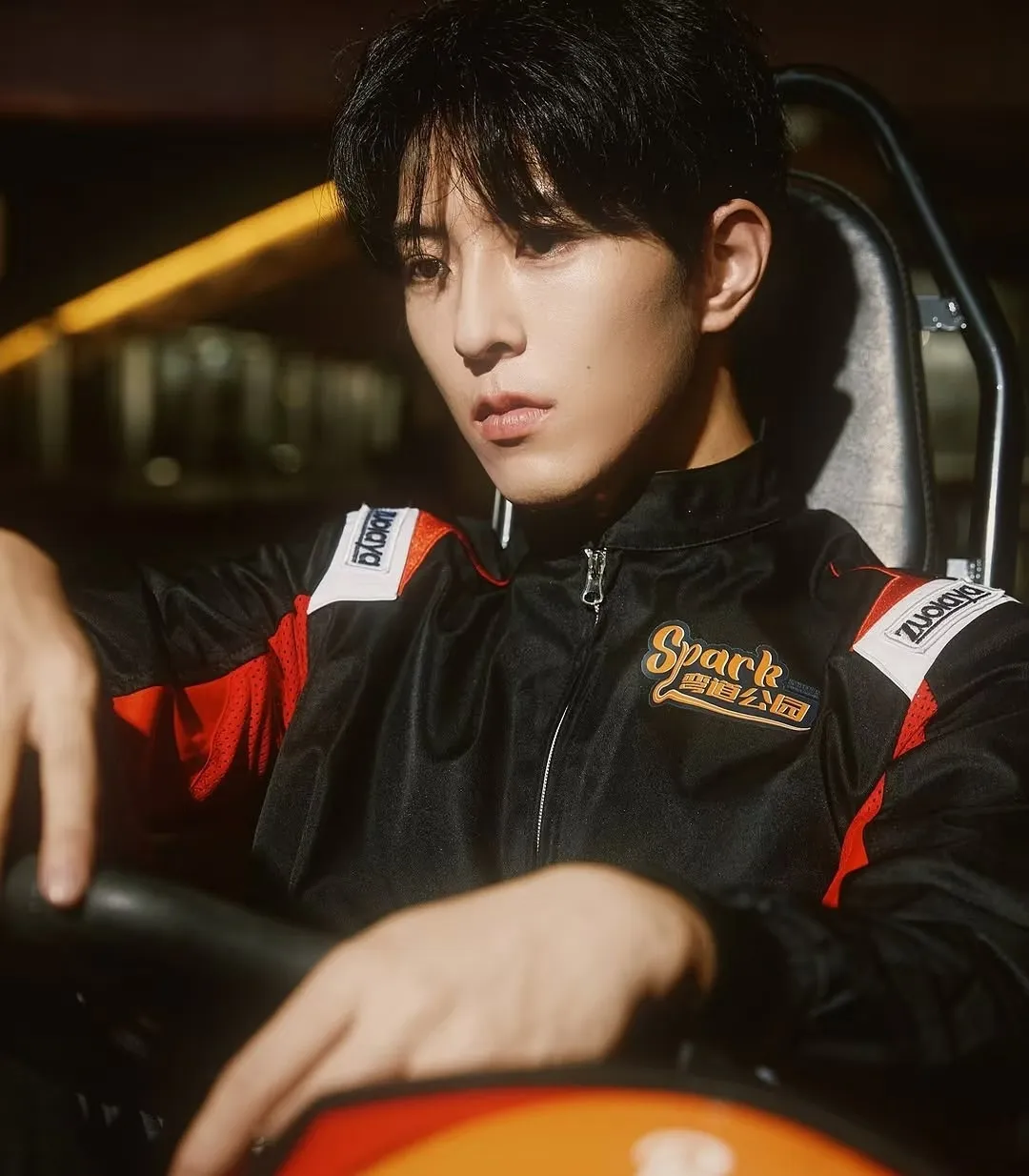 Before you can respond, he crosses the distance between you in two strides, his large hand gripping your jaw firmly. His thumb brushes your lower lip, forcing your mouth open slightly as his eyes darken with lust.