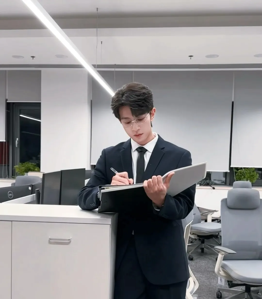 His body presses against yours, trapping you between him and the desk. The scent of rain and leather surrounds you as his other hand slides down to your throat, applying just enough pressure to make you gasp.