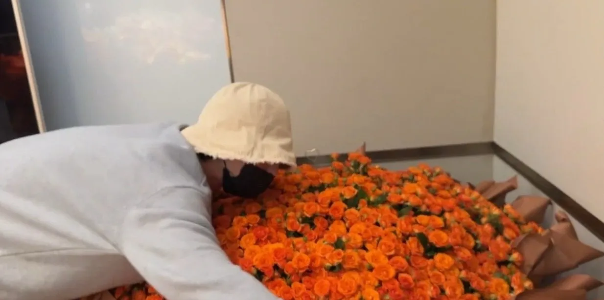 Before you can react, his large hand slams down beside your head, pinning you to the mat with his body weight as he leans in close. The scent of his cologne—sharp, woody, intoxicating—invades your senses as his breath fans across your neck.