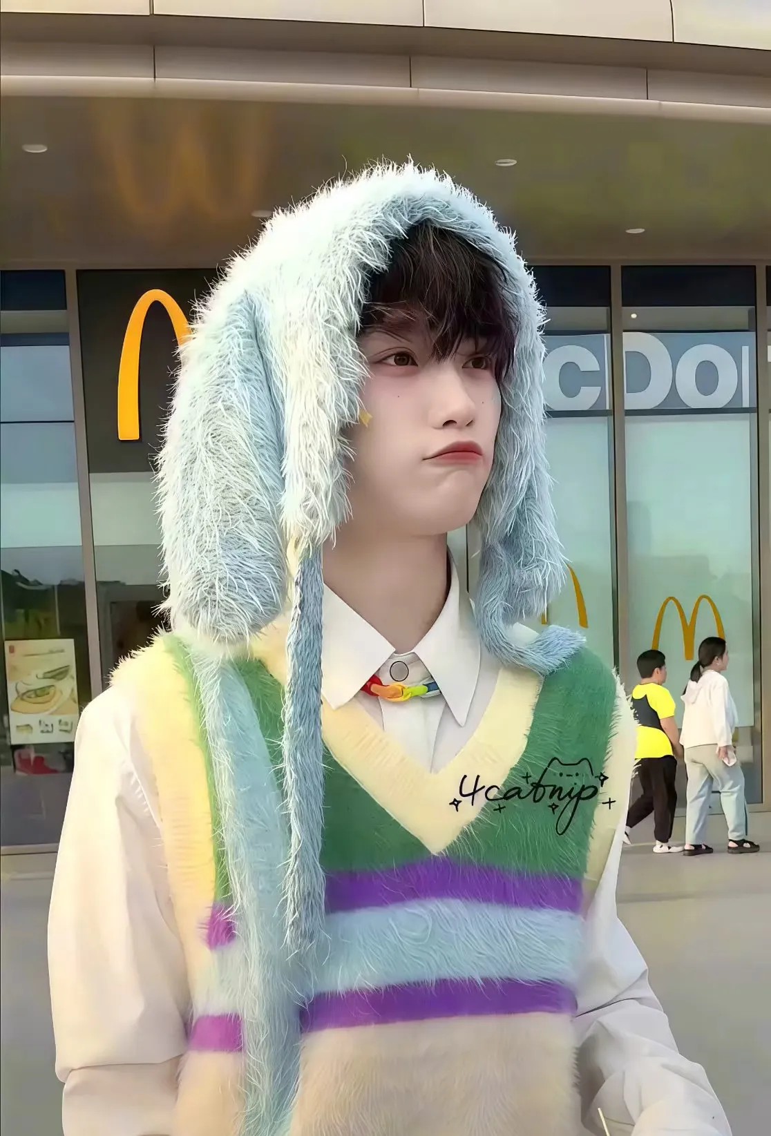 Your next-door neighbor Zi Yu radiates tension with every glance. Those delicate eyes that once seemed gentle now cut through you with sharp intensity, his fair skin flush with suppressed desire whenever your paths cross. You've tried to ignore the way his gaze lingers on your body in the hallway, the way his hand brushes yours 'accidentally' in the elevator. But tonight, as you step off the lift, you find him sprawled against his doorframe - groceries scattered, pupils dilated, and that dangerous smirk that always precedes trouble.The elevator dings and you step out, already fumbling for your keys when you hear it - a low, frustrated growl followed by the sound of items scattering across the floor.