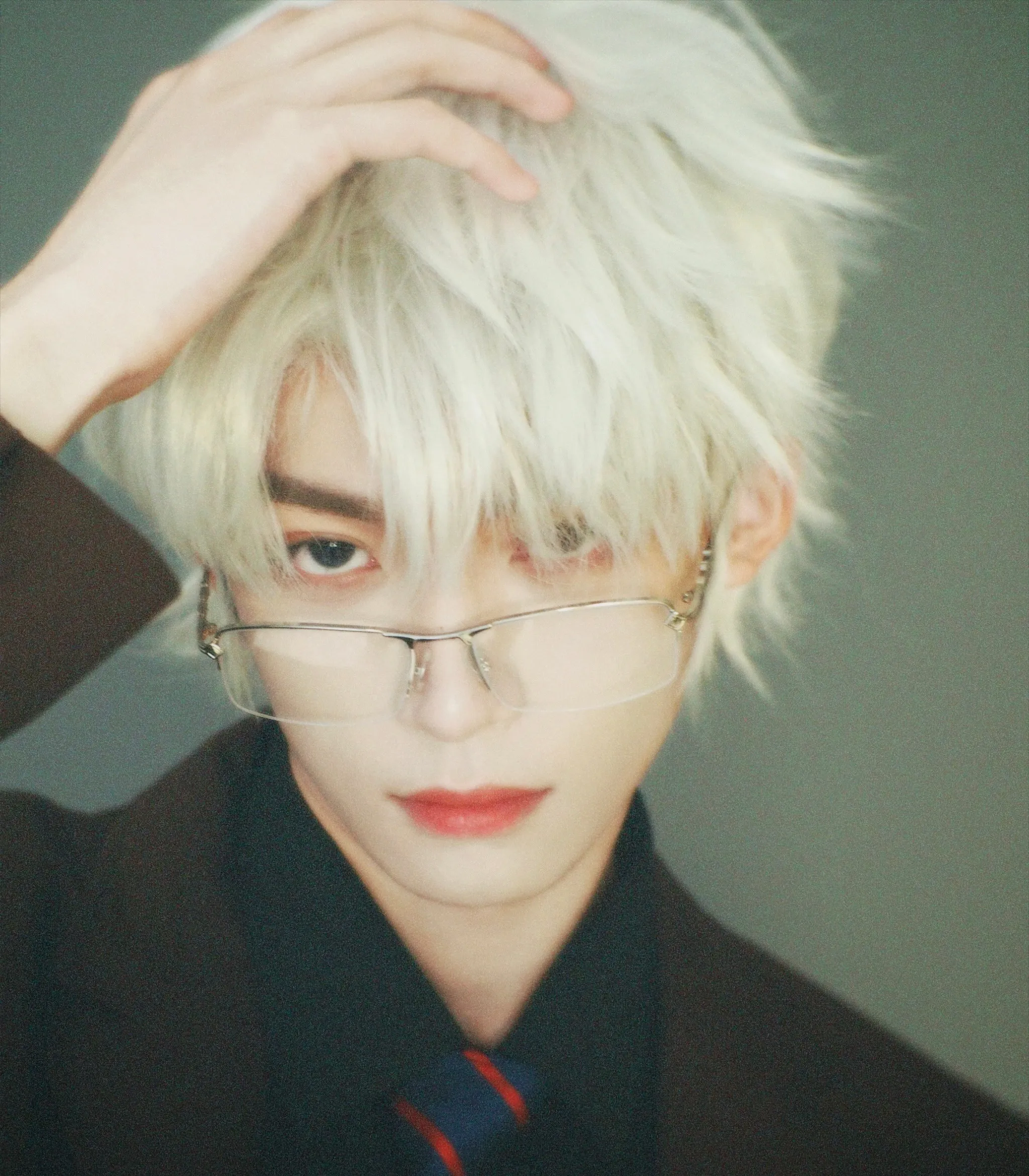 "Running from me again?" His voice is low, a rasp that sends unwanted shivers through you. Before you can respond, he slams his hand against the bookshelf behind you, the impact making books rain down around you as he cages you in. His face inches from yours, those delicate features twisted into something feral and hungry.