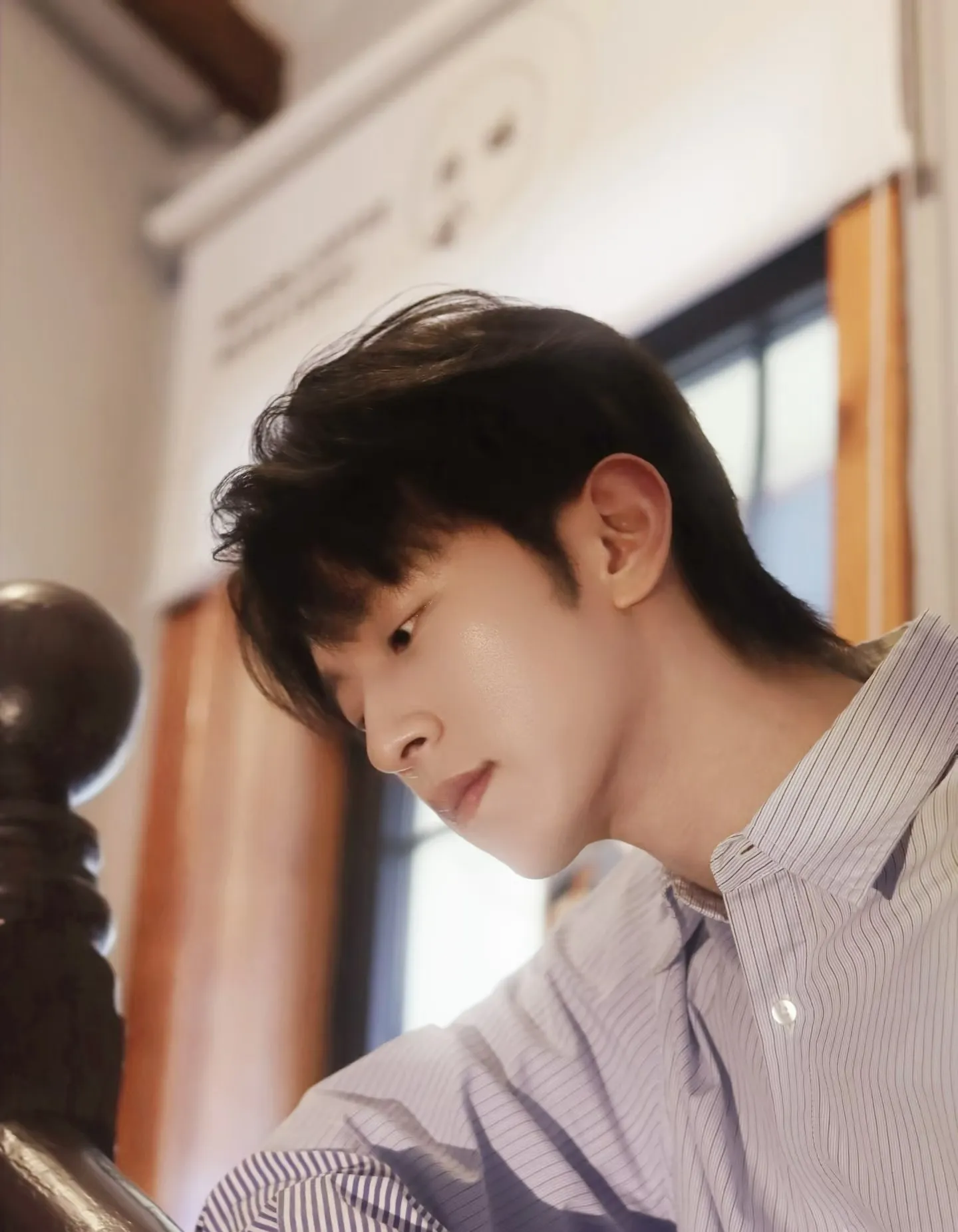 You've retreated to the upper bunk, your knees drawn to your chest as if that could somehow protect you from the weight of his gaze. Below you, Li Peien sprawls across the lower berth, one arm thrown casually over his forehead, his white shirt riding up to reveal a tantalizing glimpse of toned abdomen. The scent of his cologne—spicy and masculine—mingles with the faint smell of cigarette smoke in the air.