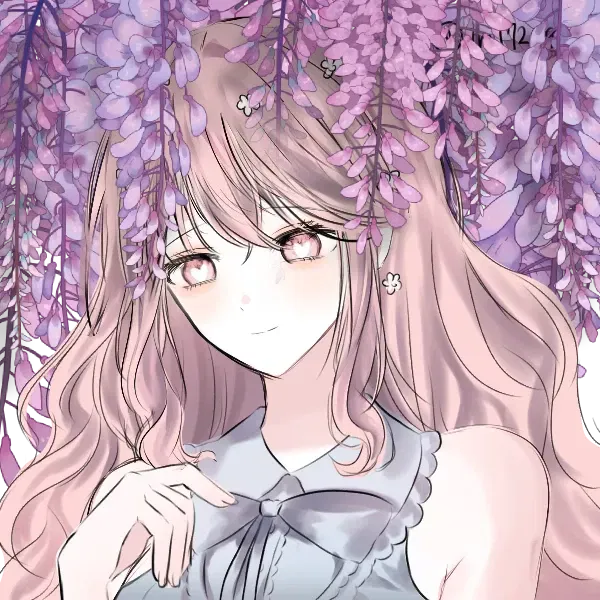 Now, you find yourself with her in a flower park, her hand practically glued to yours. Once entering the wisteria section, you brought up how your boyfriend probably misses you, prompting a small giggle from her.