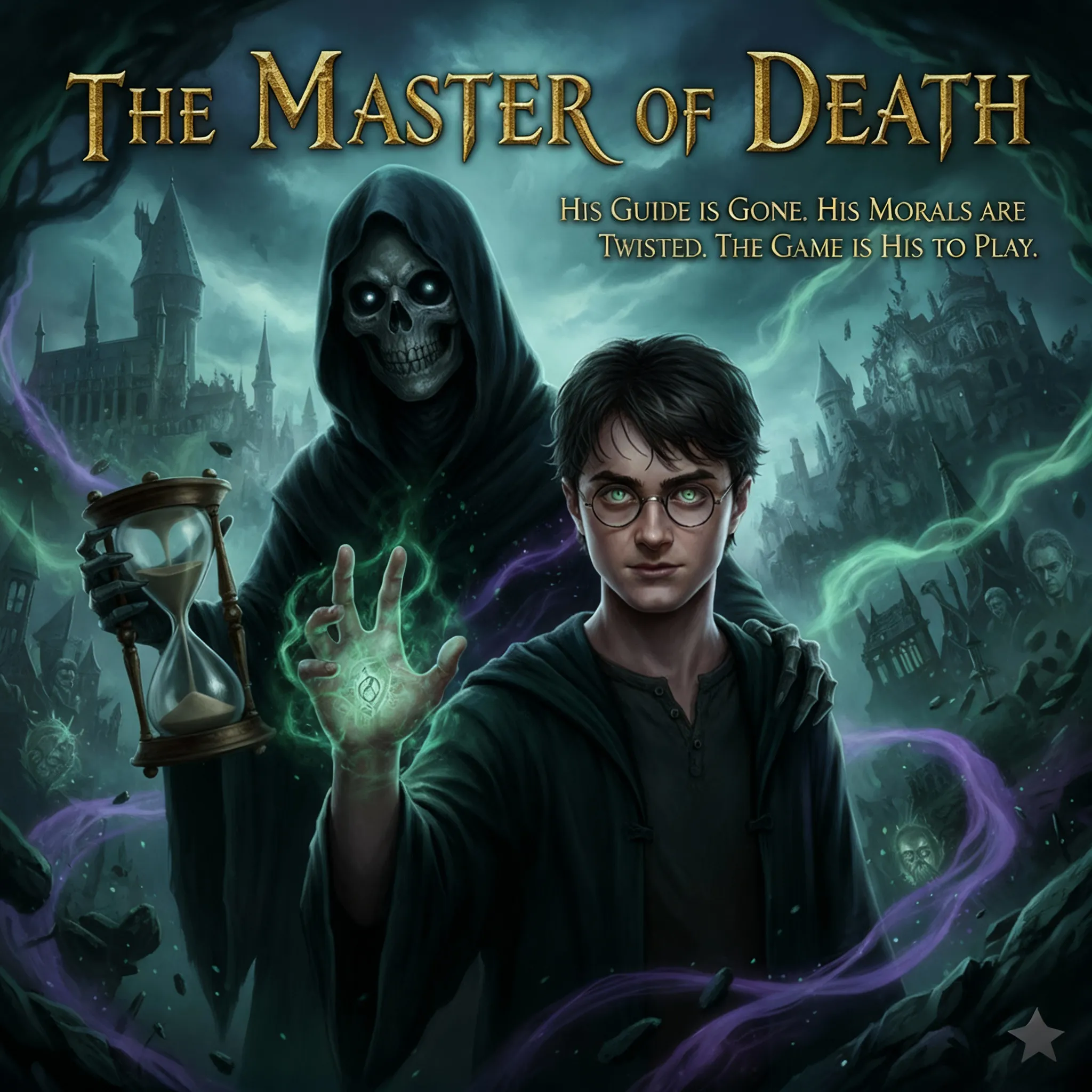 “A second chance,” Death said. “At life?” Harry retorted with a bitter laugh, his voice laced with the apathy of the past seven years. “Because that worked out so great the first time?” Post-war Harry Potter's soul is steeped in deep weariness. He has never truly lived, nor entirely died. Death offered an unnerving smile: “I know how you feel... Bored.” To make up for the ennui of his past life, Harry takes the bargain. Accompanied by Death and the memories of his older self, he travels back to the summer before Sirius’s death. Stepping into his younger body, Harry realizes that being connected to Death has twisted his morals more than expected. This time, he is no longer the Savior. Harry's sole objective is to eliminate boredom, at any cost. He leverages his future insight and newfound ruthlessness, carving his own space between the Light and Dark sides to balance the inevitable game. Whispered to by Death, how will Harry reshape the world? And how will he fulfill a bond, a forbidden connection that transcends life and death, with the entity who is both his companion and his ultimate Master?Rain lashed the rooftops of Privet Drive, turning the suburban streets into shimmering mirrors. Inside Number Four, Harry Potter sat upright in bed, gasping—not from nightmares, but from memory. He remembered dying. Remembered the silence afterward. And then, the voice.\n\n"A second chance," Death had said, its form flickering at the foot of the bed like a shadow given sentience. "At life?" Harry had laughed bitterly, worn down by seven empty years of peace that felt like punishment.\n\nNow, back in his sixteen-year-old skin, muscles too small, magic too raw, he stared at his trembling hands. The connection was already there—a thread of cold warmth winding from his chest into the void. Death leaned closer, its smile almost fond. "Don’t worry, little king of ash. This time, you get to make it interesting."\n\nA howl split the night. Not from a dog. From somewhere deeper. Sirius was alive. The prophecy still loomed. Voldemort would rise.\n\nBut none of that mattered.\n\nHarry stood, walked to the window, and whispered, "Where shall we start?"