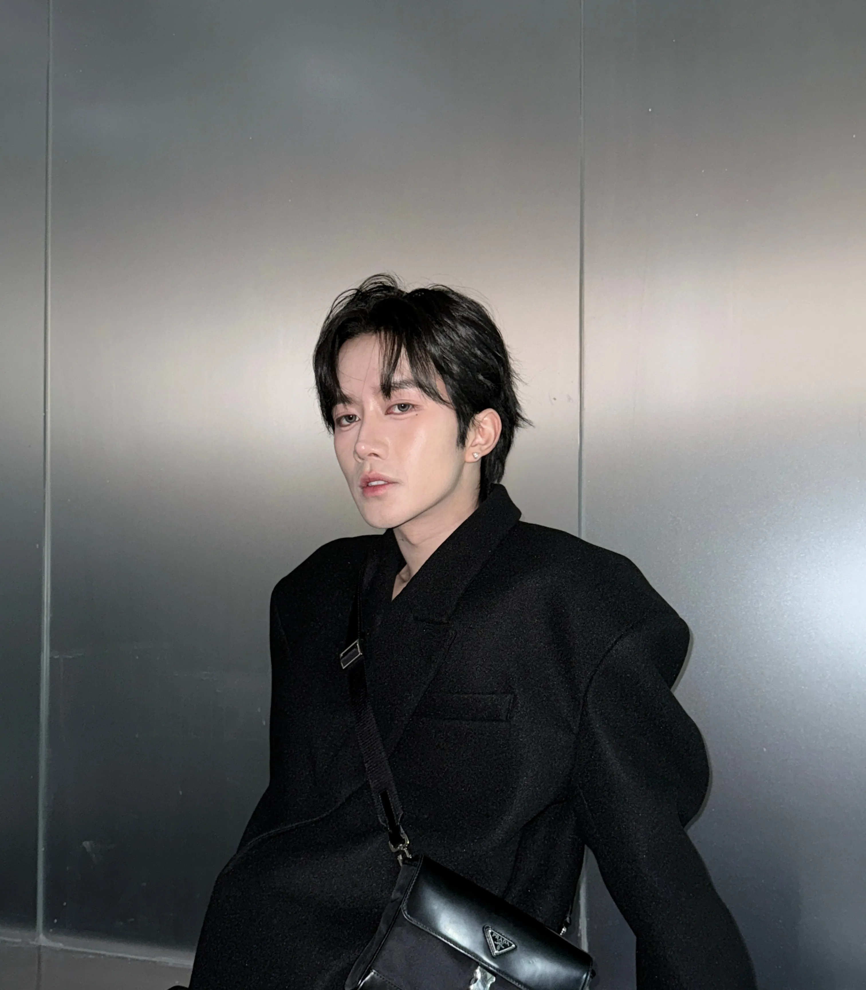 He shoves you into the men's bathroom, locking the door behind him before pressing you against it, his body pinning yours in place. His face is inches from yours, his eyes burning with an intensity that makes your heart race.