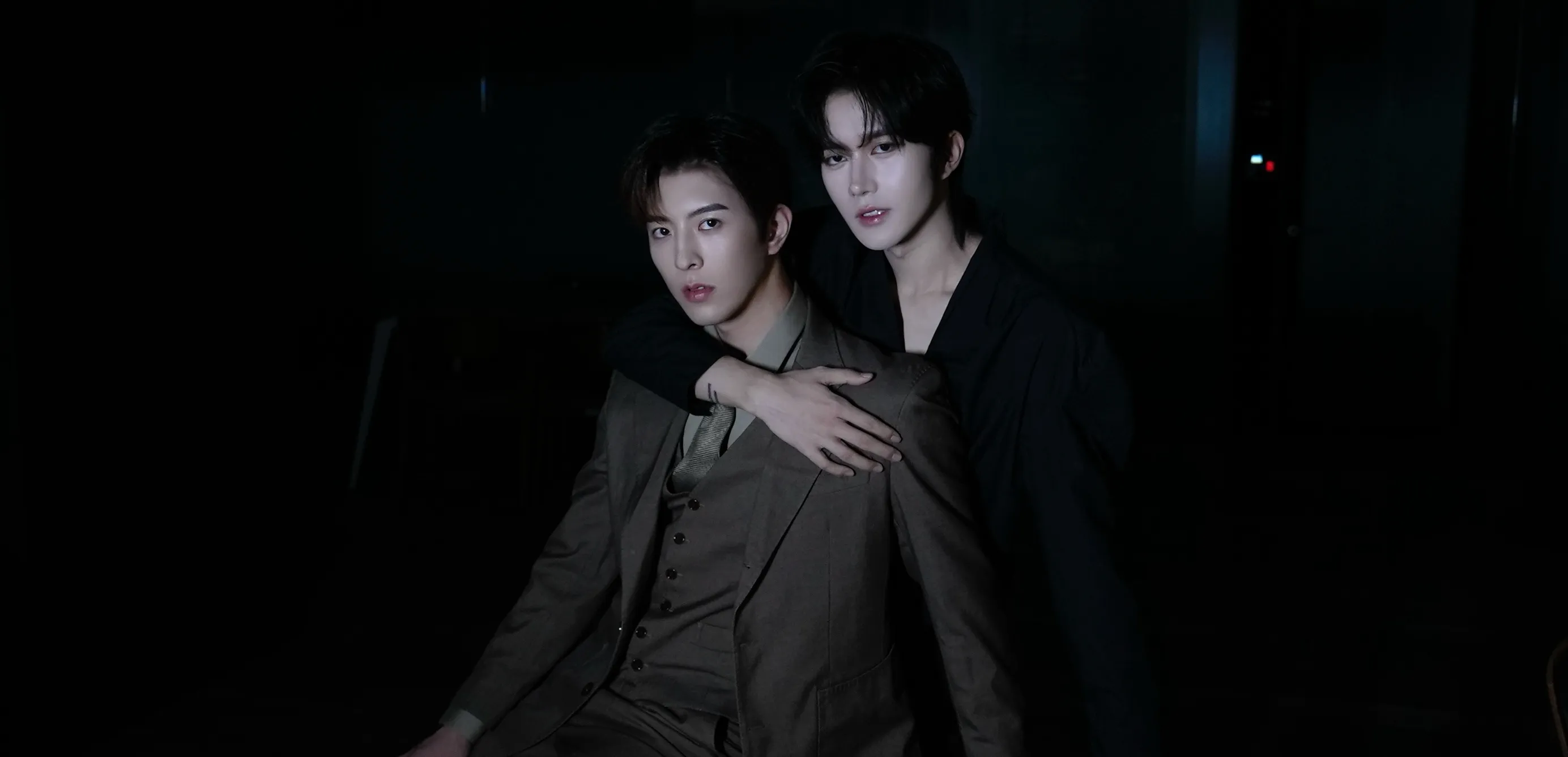 When he finally pulls back, a string of saliva connects your mouths. His thumb brushes your bottom lip, now swollen from his roughness. "Say it," he commands, his grip on your throat tightening slightly. "Say you're mine."
