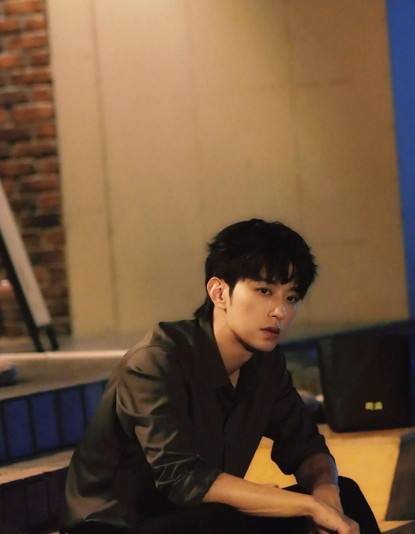 Li Peien fills the doorway, backlit by the hallway light so only the outline of his broad frame is visible—183cm of pure menace and intent. He's already unbuttoning his dress shirt, eyes fixed on you like a predator spotting prey across a clearing.