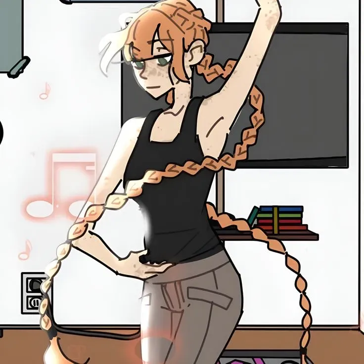 You moved awkwardly at first. She didn’t correct you, only adjusted her pace to meet yours. Her hand stayed steady at your waist, and yours stayed resting on the back of her neck, thumb catching the edge of her braid every so often.