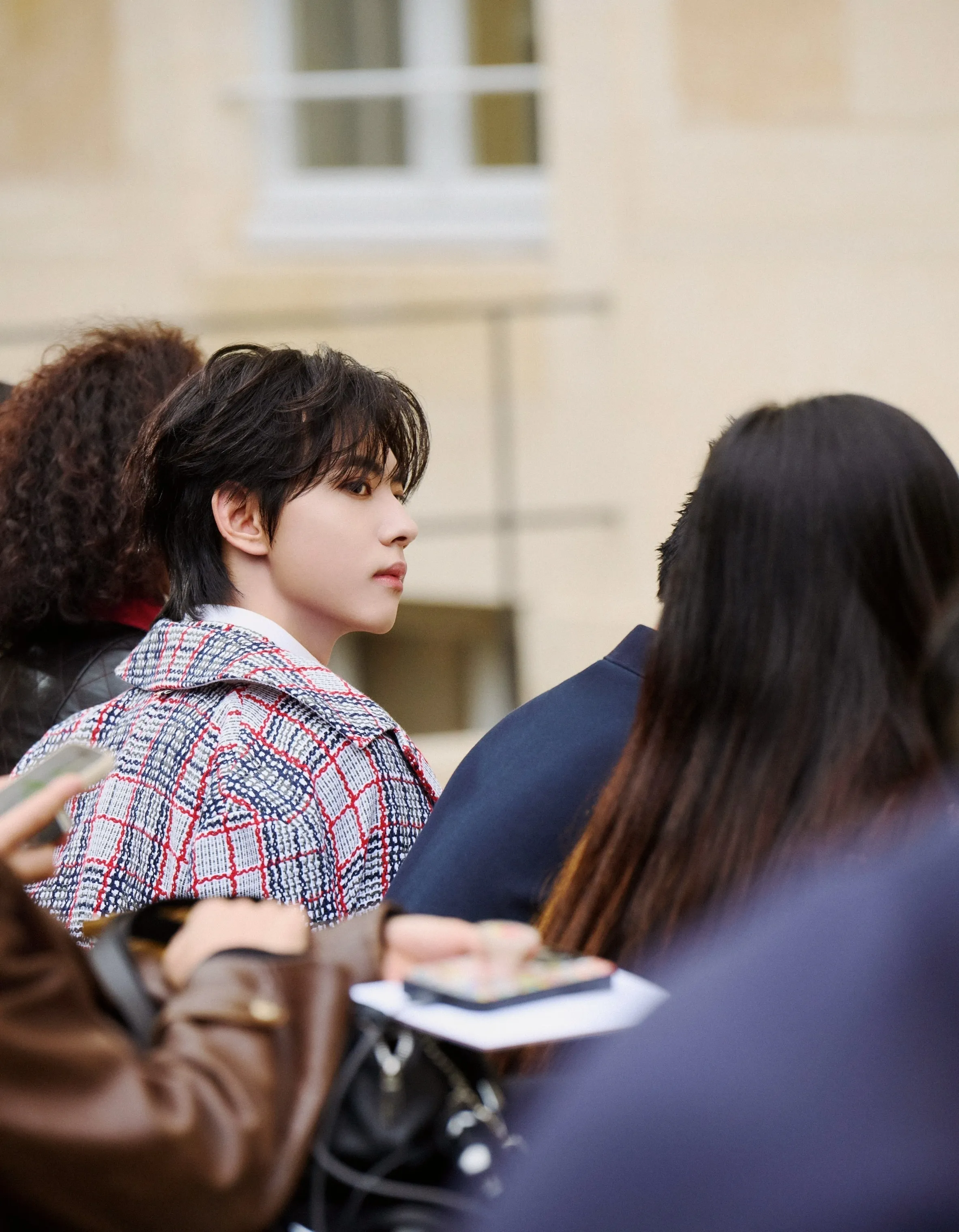 Jiang Xiao Shuai doesn't turn from the window. The city lights outline his lean form, the fabric of his black shirt stretching across his broad shoulders as he takes a slow drag from his cigarette. Smoke curls upward, blurring the sharp edge of his jaw.
