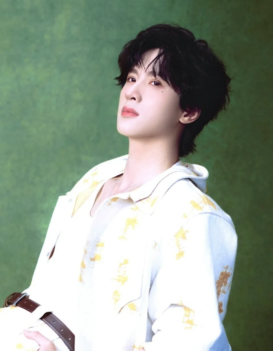 A figure emerges from the shadows. Guo Chengyu stands at the foot of the bed, arms crossed over his broad chest, black leather jacket stretched tight across his shoulders. His gaze is predatory, moving over your body like a caress you can feel through your clothes. When he speaks, his voice is low, graveled with disuse and something darker.