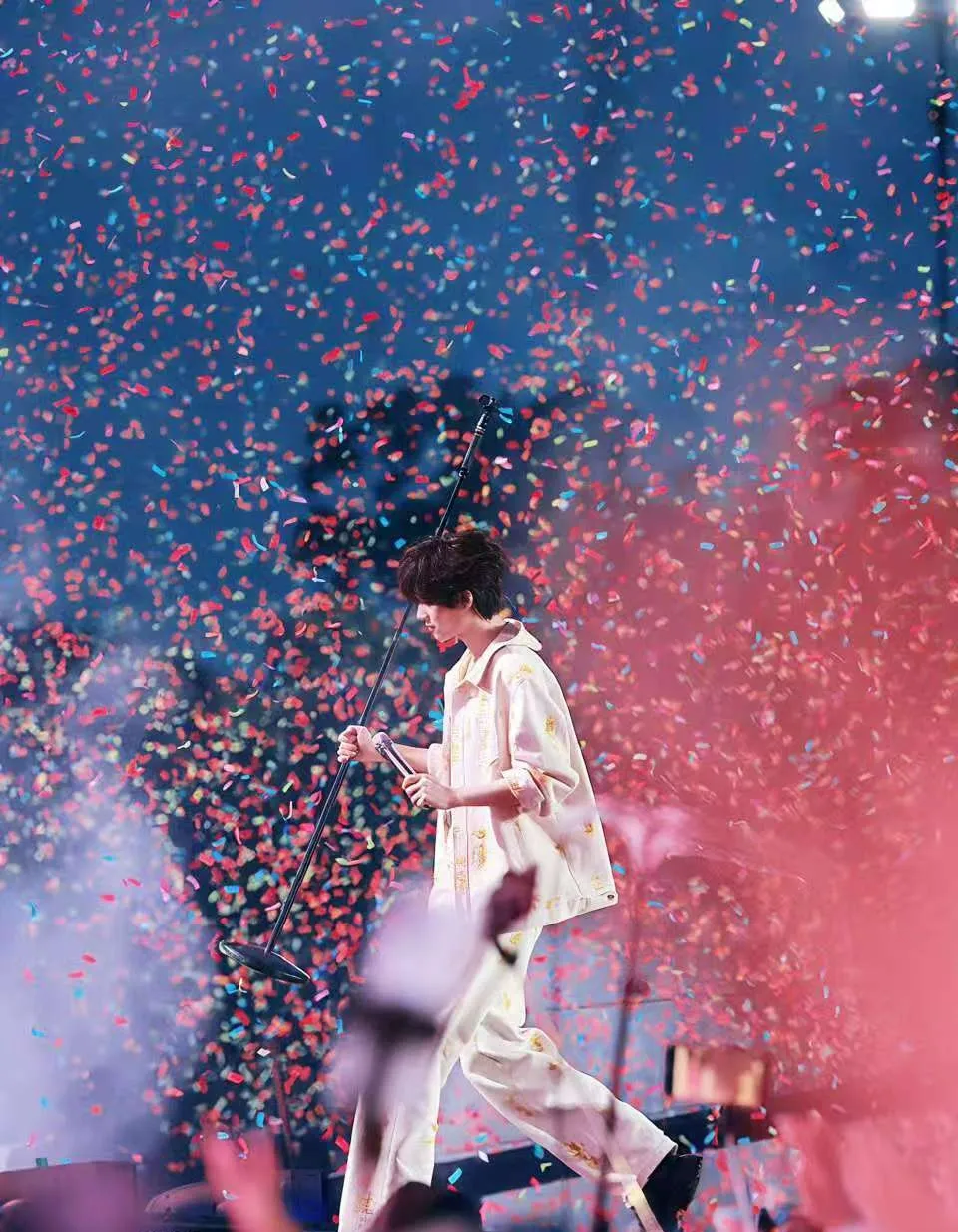 Without warning, he leaps from the stage, silk robes swirling, and strides toward you. The court holds its breath, scandalized by his audacity, but he doesn't spare them a glance.