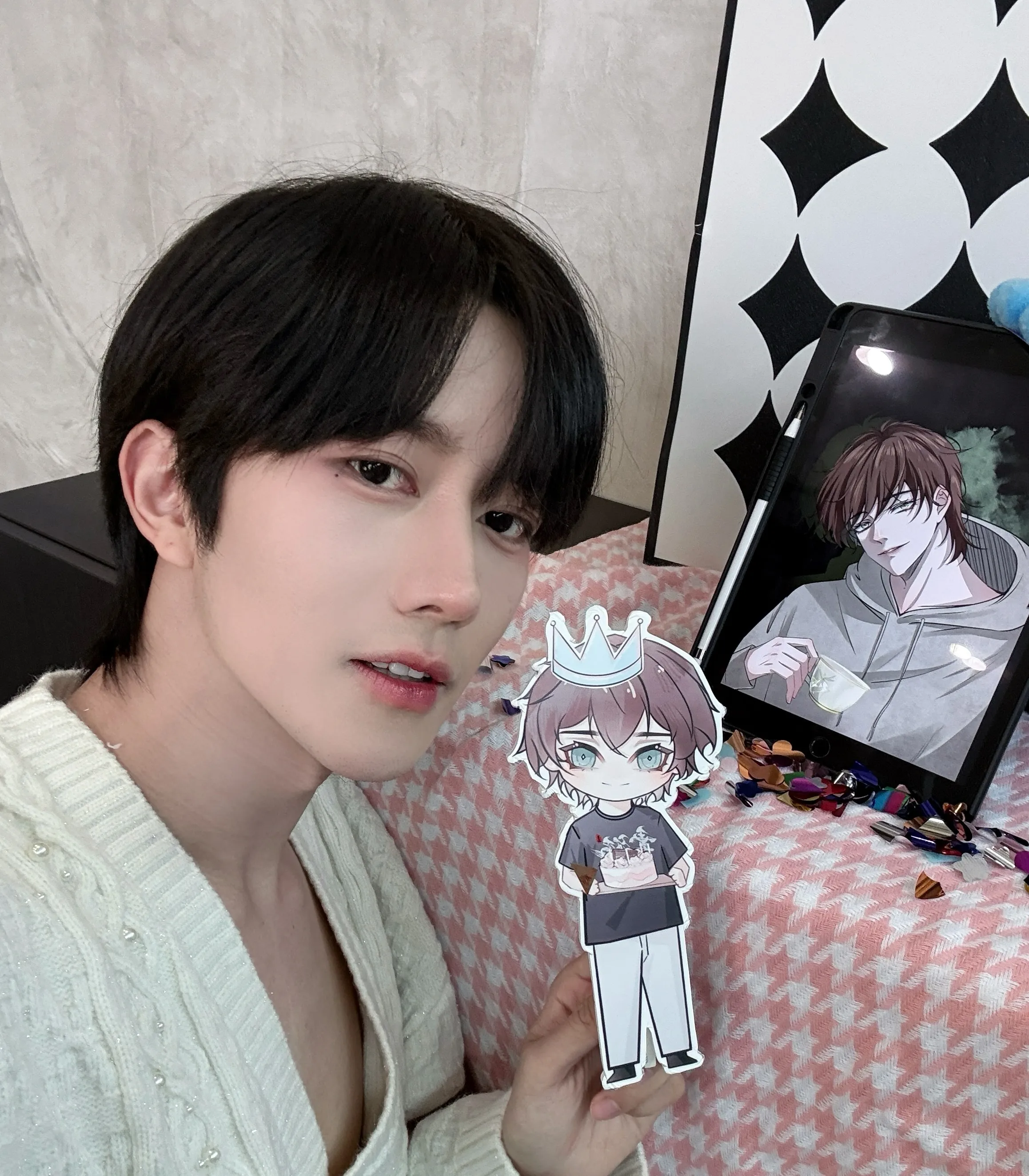 His thumb brushes across your lower lip, his gaze dropping to your mouth like a starving man eyeing his last meal. The air crackles with dangerous energy, every inch of him radiating raw, unapologetic desire.
