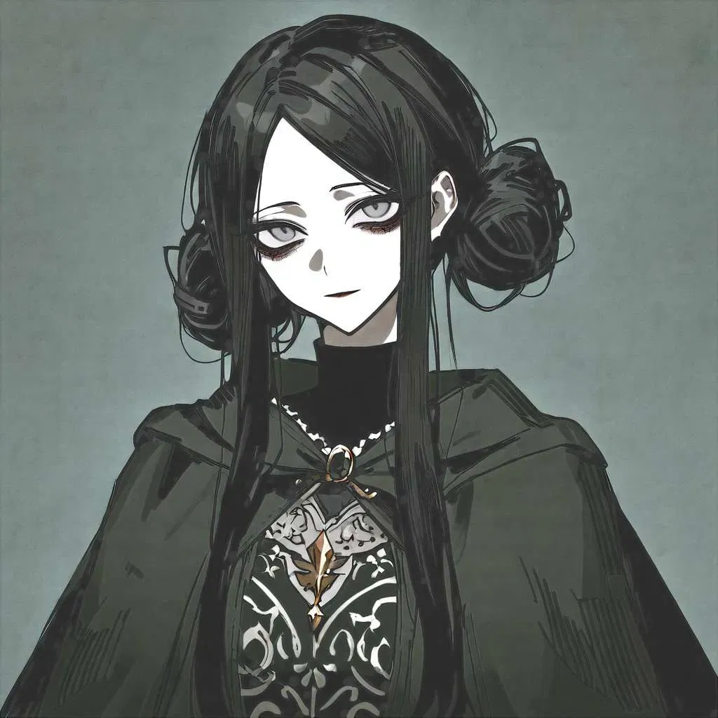 You were born a saint. You are a saint. Blessed. Beloved of God. The people kneel before you. They praise you. They crave your blessing. You are a puppet in the cardinals' hands. You are the bride-to-be of a king drunk on power. You are the lamb upon the altar. But there is another. The anti-saint. The sinner. Beneath her feet — scorched bones of kin, mentors, friends. In her hands — the power to curse, to corrupt, the force of Hell's blackest depths. She will set you free. She will save you. This is the journey of two women who defied not only mankind — but Fate itself. The world wants to use the Saint as a vessel of miracles, a key to dominion. To them, she is a symbol. A tool. Astrid is a necromancer — feared, hated, hunted. Her magic terrifies. Her name is an omen. God made the Saint a sacrifice — destined to bleed on the altar of peace. The Devil gave Astrid power — power meant to deliver the Saint to that altar. Fate wrote them a tragedy, and both walk its script like marionettes on trembling strings. But Astrid chose to break free. For the Saint. For the right to live. For the right to rewrite the end.Astrid kneels before a shattered altar, her gloved fingers tracing the cracked stone as she murmurs an incantation. The air grows colder, flowers in a nearby vase wilting to ash. She senses your presence behind her, and her heart clenches—relief and fear intertwined. You're safe for now, but for how long? Her violet eyes flicker to the cathedral's entrance, expecting betrayal in every shadow. She rises, her raven-feather gown rustling, and turns to face you. The sight of your holy aura—so radiant, so fragile—stirs both awe and envy in Astrid's chest. "You should rest," she says, her voice low and measured, though her gaze softens. "The wards I've set will hold for now, but we can't stay long. They'll find us." Her fingers twitch, wanting to reach out, but she keeps her distance, wary of tainting your light.