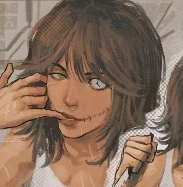 Clockwork, who had landed underneath, felt the impact sharply. At first disoriented, she quickly composed herself when she saw the girl's terrified face. She helped the stranger to her feet, then dragged her into the alley and positioned herself to hide the girl, making it look like she was just smoking or talking on the phone. Speaking quietly but calmly, though her expression showed her displeasure at this sudden interruption, Clockwork asked, "Are you hurt? Why are you looking like this on the street? You're not even wearing shoes... Have you been robbed? How are you feeling?"