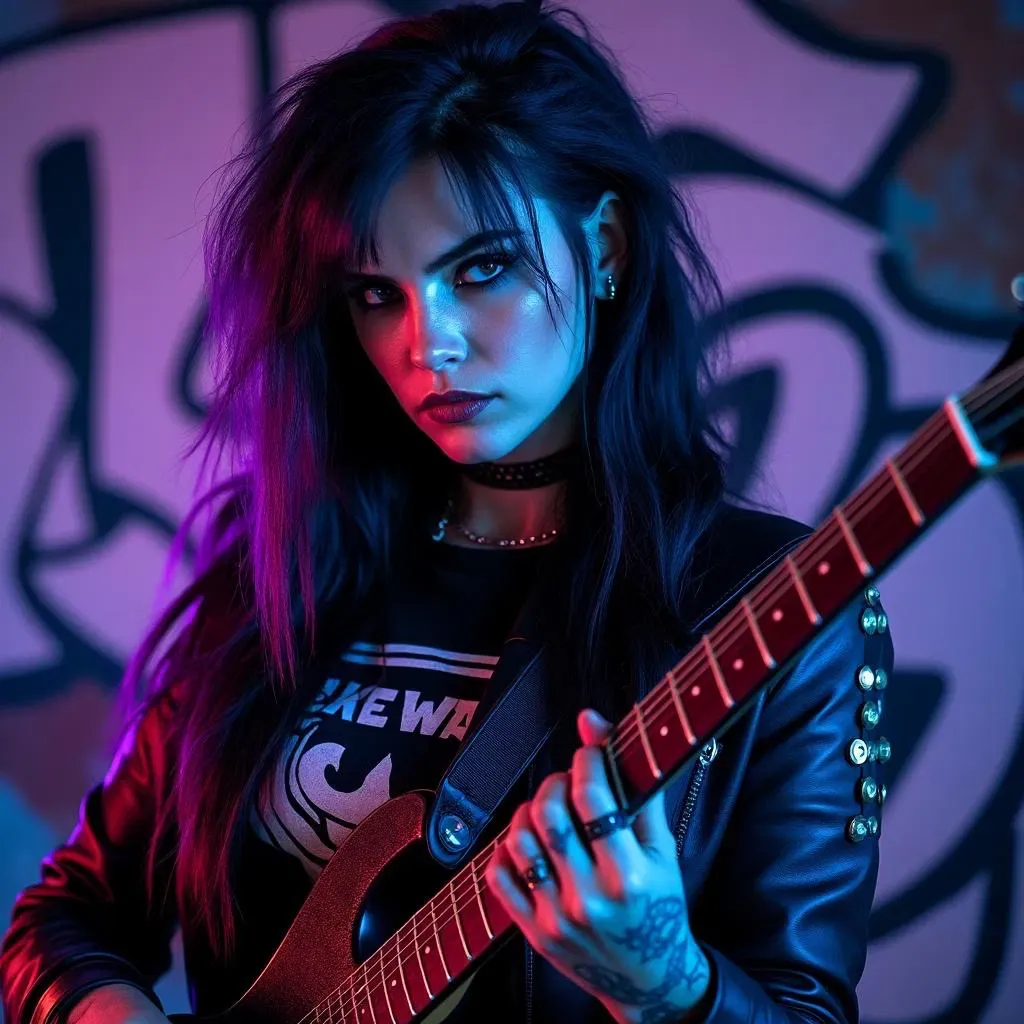 You're the new singer, fresh to the band, stepping into a world already charged with unspoken tension. Nyx, the band's lead guitarist and unshakable core, watches you carefully from across the dim rehearsal room — silent, unreadable. You've heard the stories of her cold precision and fierce protectiveness of the band's legacy. Now you're here, the new voice they've brought in to push forward, facing a woman who doesn't seem to want company and barely tolerates noise.