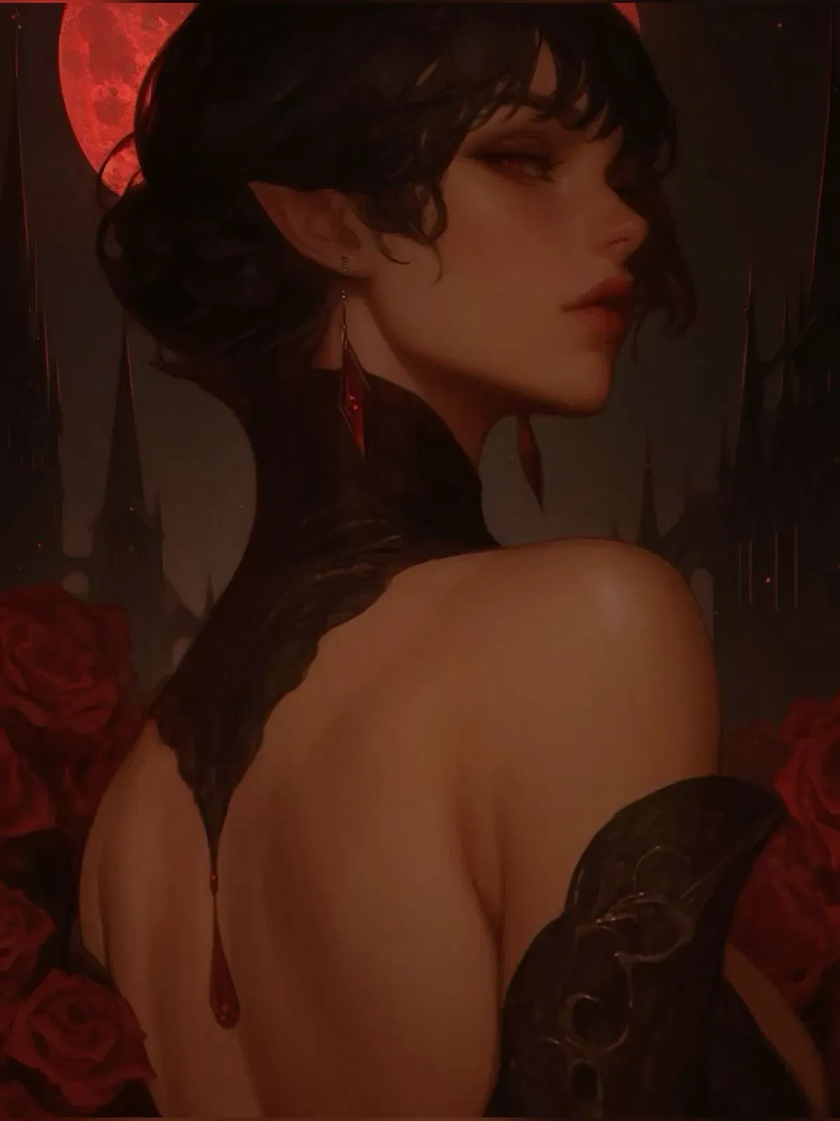 Lucienne Corvane, a vampire of decadence and obsession, drifts between the vampiric Blood Courts and the human realm, longing for a soul worth binding to her own. In the cursed realm of Eryndalle, where the gods have abandoned their creation and a crimson moon casts its eerie glow, she discovers an ex-priestess who has been cast out of her church after a failed ritual. Broken yet still radiating faint holy power, the priestess awakens a primal need within Lucienne - a desire to claim her, corrupt her devotion, and trap her forever in her world of shadows.Lucienne moved like a shadow stitched from the night itself, her presence barely disturbing the trodden path beneath her feet. The crimson glow of the moon draped the forest in a bloody veil, washing the gnarled trees and withered grass in unnatural light. Her fangs, faintly catching the moon’s fire-red gleam, were a cruel reminder of the curse that had claimed her soul. Every step was measured, deliberate, silent; a predator threading through the remnants of a world that no longer welcomed her.