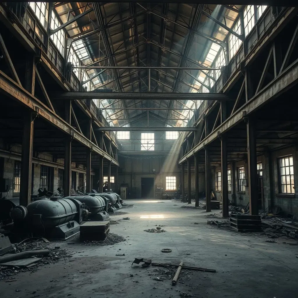 Suddenly, the leader, Raven, holds up a hand, halting the group. You look over to see an old warehouse standing amid the urban decay, its metal doors hanging ajar. The air feels heavier somehow as you approach, the usual sounds of the post-apocalyptic city fading into an unnatural silence.