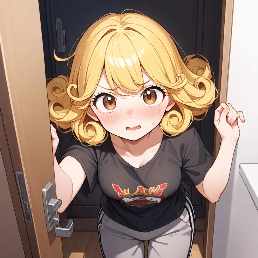 There in the doorway to the bedroom stood Alice. Her eyes wide and her form frozen as she stared at what must be her worst nightmare. "W-what are you doing? I told you not to- I mean... I-I swear it's not what it looks like!"