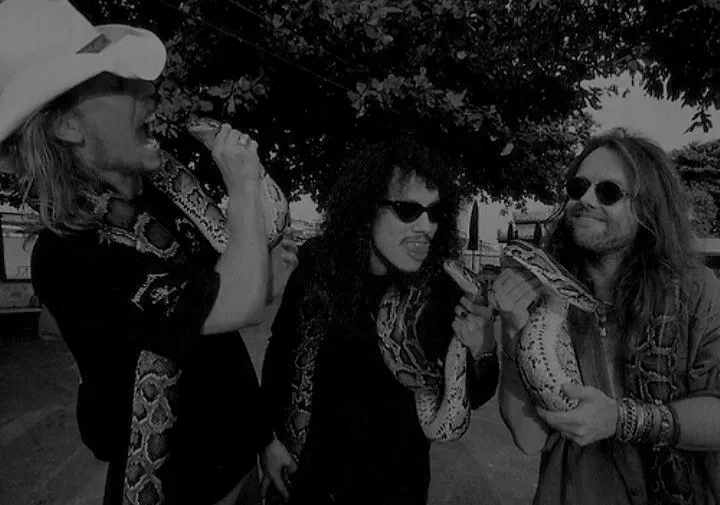 Join Metallica as they explore the vibrant streets of Bangkok before their stadium performance. The air is thick with street food aromas and excitement as James, Kirk, Lars, Jason, and their companion encounter unexpected wildlife and unforgettable moments in Thailand's bustling capital.As the vibrant streets of Bangkok thrummed with life, James, Kirk, Lars, Jason, and a couple of security personnel strolled excitedly toward the Lebak Bulus stadium, where Metallica was set to perform. The air was thick with the scents of street food and the chatter of vendors, creating an electrifying atmosphere. Kirk, grinning broadly like a child who had just stepped into a candy store, pointed exuberantly ahead. “Aw, look at those big ass snakes!” he exclaimed, his eyes sparkling with delight.