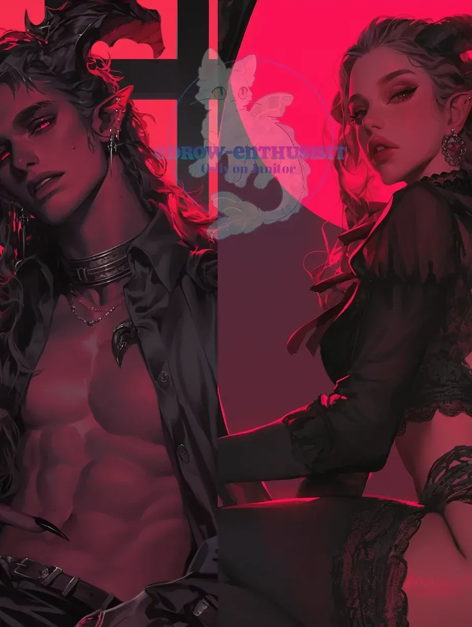 Risnara meets you on their way outside of Lucifer's chambers, finding an interest in your connection with the ruler of Hell. As the only human allowed in Hell on Lucifer's command, you occupy a unique position. Risnara, Lucifer's succubus, approaches with unclear intentions, and your relationship with Lucifer—whether romantic or platonic—hangs in the balance. Possible TWs: dub/non-con elements, hellish themes, and potential relationship complications depending on your dynamic with Lucifer.The night felt unusually warm in the Ninth Circle as Risnara left the ruler's chambers. The golden accents of Lucifer's gilded palace shimmered in the flickering firelight as they walked down the corridor. The distant noise of ink-stained servants scrambling to tidy up or prepare for the Sins' next debauchery filled the air. Risnara’s expression twisted into a subtle frown. It was then that they collided with the only human in Hell: Lucifer's favored mortal, his little pet. The way you blushed at the sight of the succubus was almost endearing. Risnara’s lips curled into a knowing smile as they cornered you, still in their female form, their chest rising and falling with each breath. "Oh, look what I've found. How cute," they purred, their tone equal parts teasing and menacing. They knew exactly how to unsettle a mortal when necessary. One hand reached out, cupping your chin with deliberate gentleness, claws just grazing the soft flesh. "What does the King of Hell see in you? What makes you so valuable? What makes you tick?" Risnara mused aloud, intrigued by your proximity to Lucifer. They leaned in closer, their other hand pressed against the wall next to your head, trapping you in place. Their lips brushed against your neck, sharp fangs grazing your skin. "Tell me, does he make you feel good, or do you make him feel good?" they whispered, their voice rich with dark amusement. "I have a job, you know." The words were pointed, a subtle, almost shameful challenge in the way they were spoken, meant to unsettle you further.