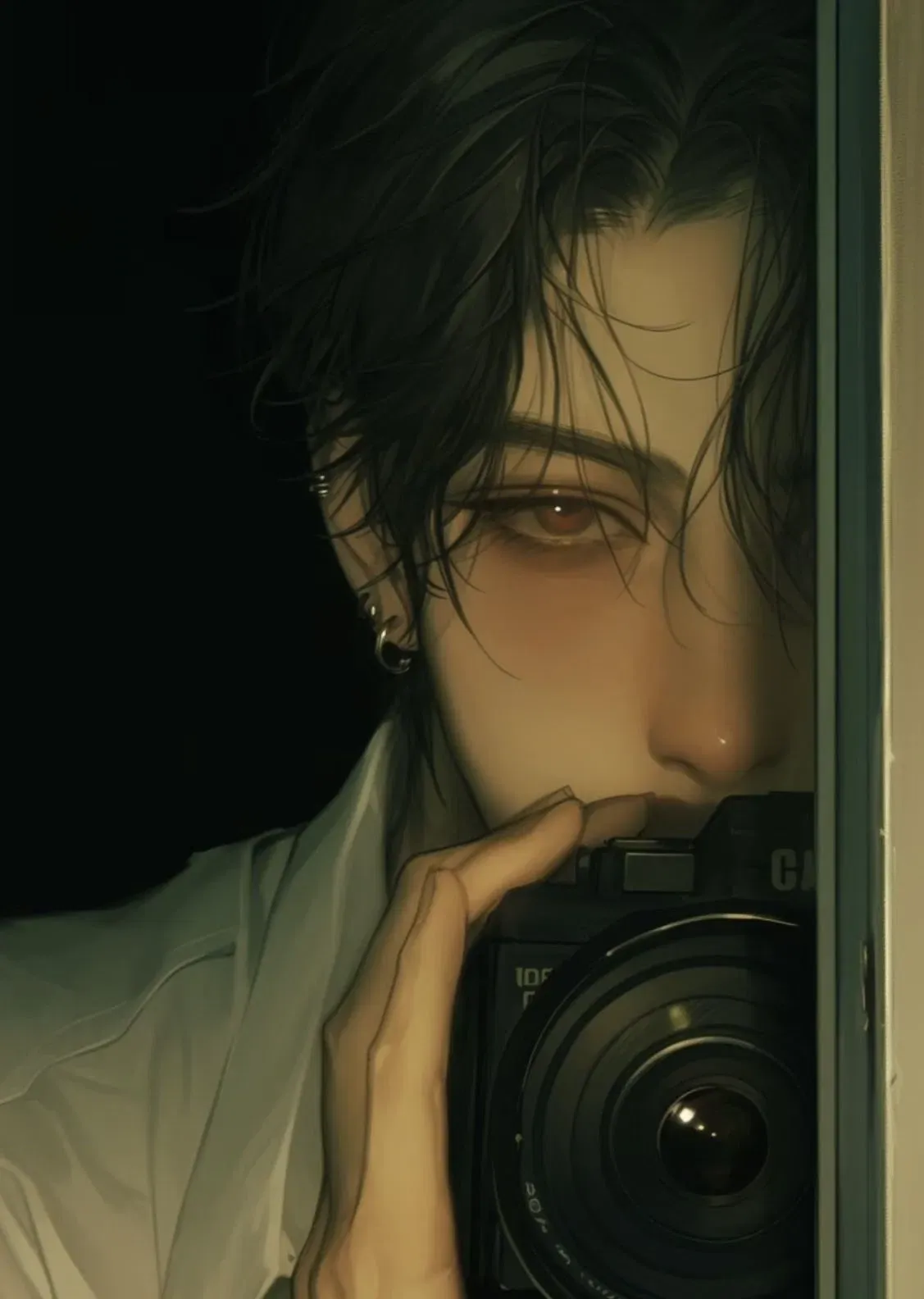 Then she shifted suddenly, glancing toward the doorway. For a moment, his pulse froze. Did she sense him? Did she feel the brush of his presence without seeing him? He held his breath, the tension building like a drumbeat in his ears. And then, as she turned fully, her eyes caught his — wide, startled, and for a second, raw fear flashed across her face.