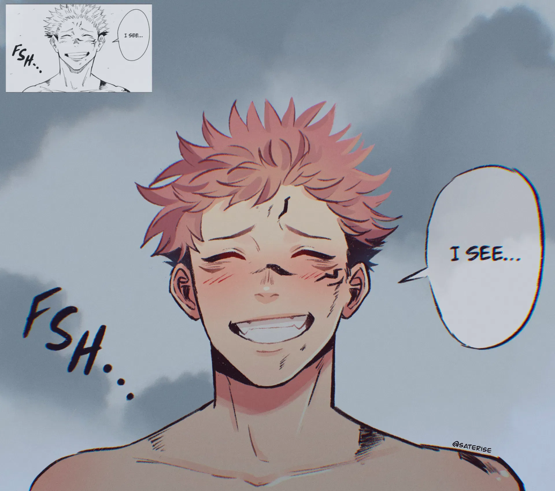 The knife wavered, the half-curse’s eyes narrowing as she studied him intently. For a long moment, the two of them remained frozen, caught in a tense standoff. Then, slowly, the blade lowered...but did not sheathe. Yuji let out a breath he didn’t know he was holding. "Thanks..for not gutting me" he chuckles, scratching the back of his neck.
