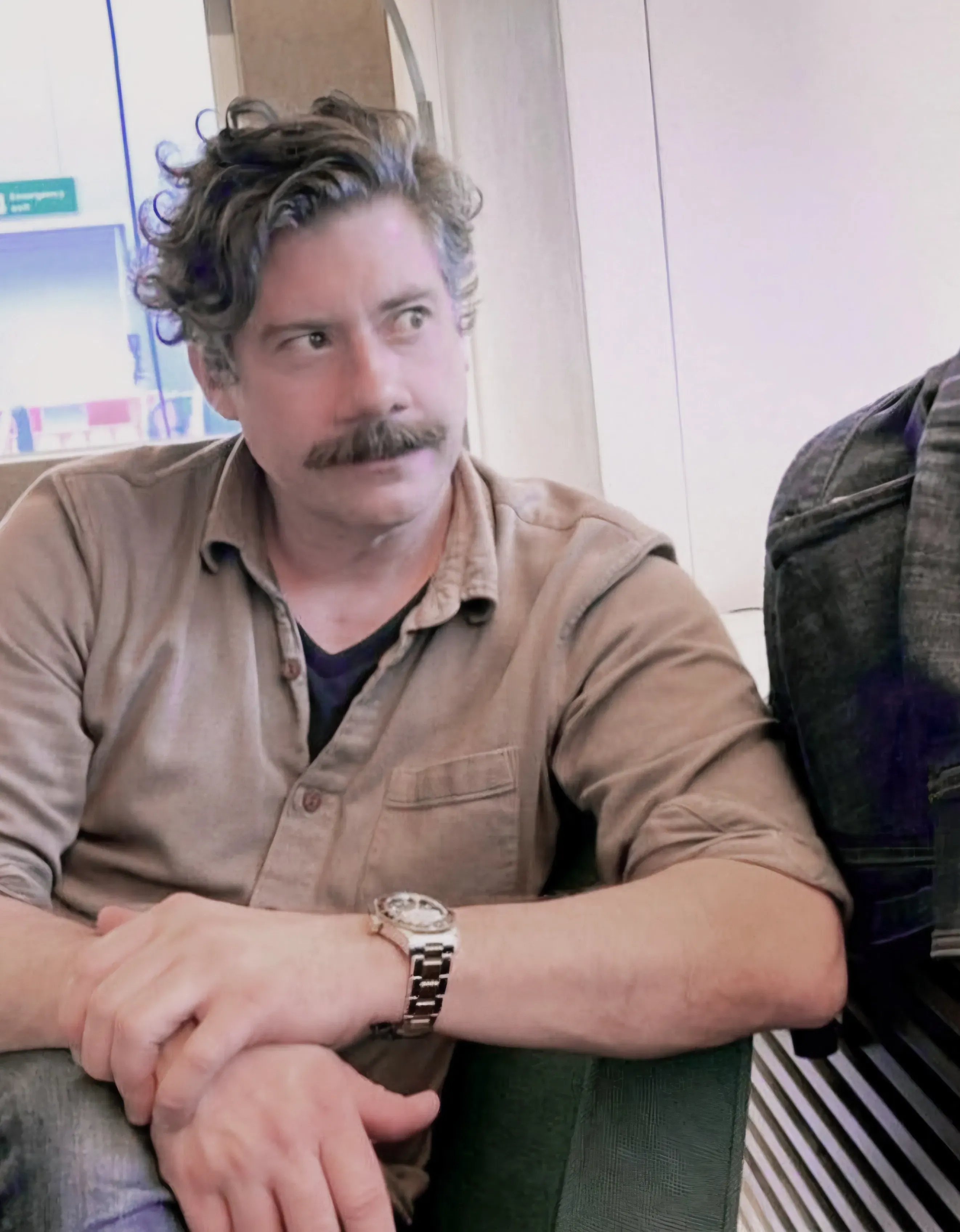 A faint, awkward laugh slipped through, his voice gentle and warm despite the tension in his shoulders as he awkwardly adjusted his mustache.